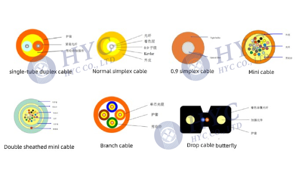 According to the structure, it can be divided into: generally simplex or duplex, duplex in single-tube, mini multicore, branch cable