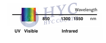 Light is defined by its wavelength, and in fiber optic communications, we use light in the infrared region which has wavelengths longer than visible light. In optical fiber communication, the typical wavelength ranges from 800 to 1600nm, and the most commonly used wavelengths are 850nm, 1310nm and 1550nm.