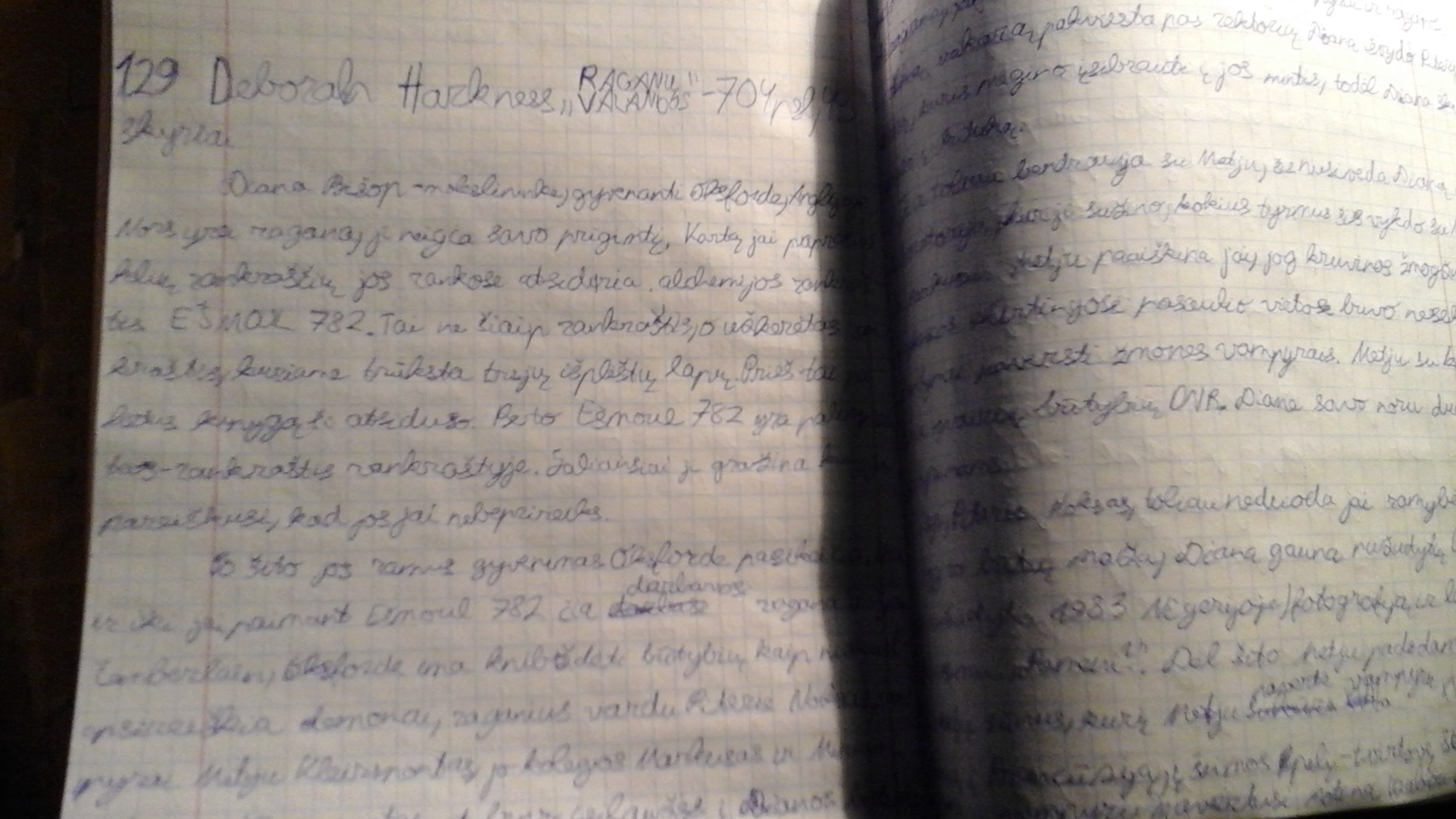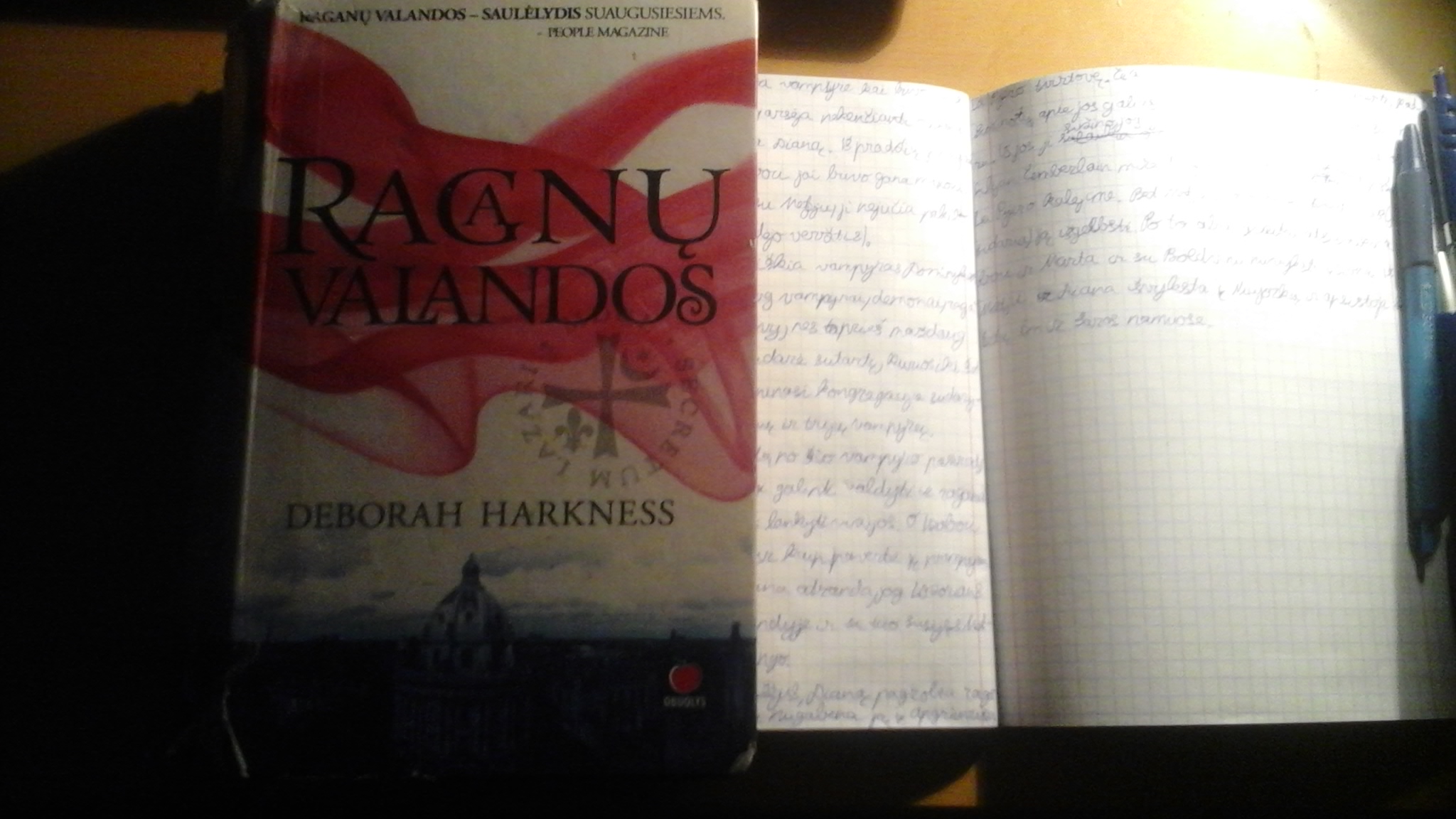 So, today I finished to read Deborah Harkness book ,,A discovery of Witches". It was very interesting story covering witches, vampires and demons. In Lithuania no other two books have been published. So you will find out more about the series while watching the series ,,A Discovery of Witches". Today I described this in my notebook where I describe all books which I have read.