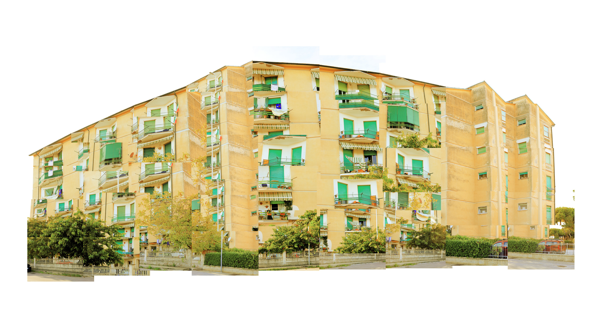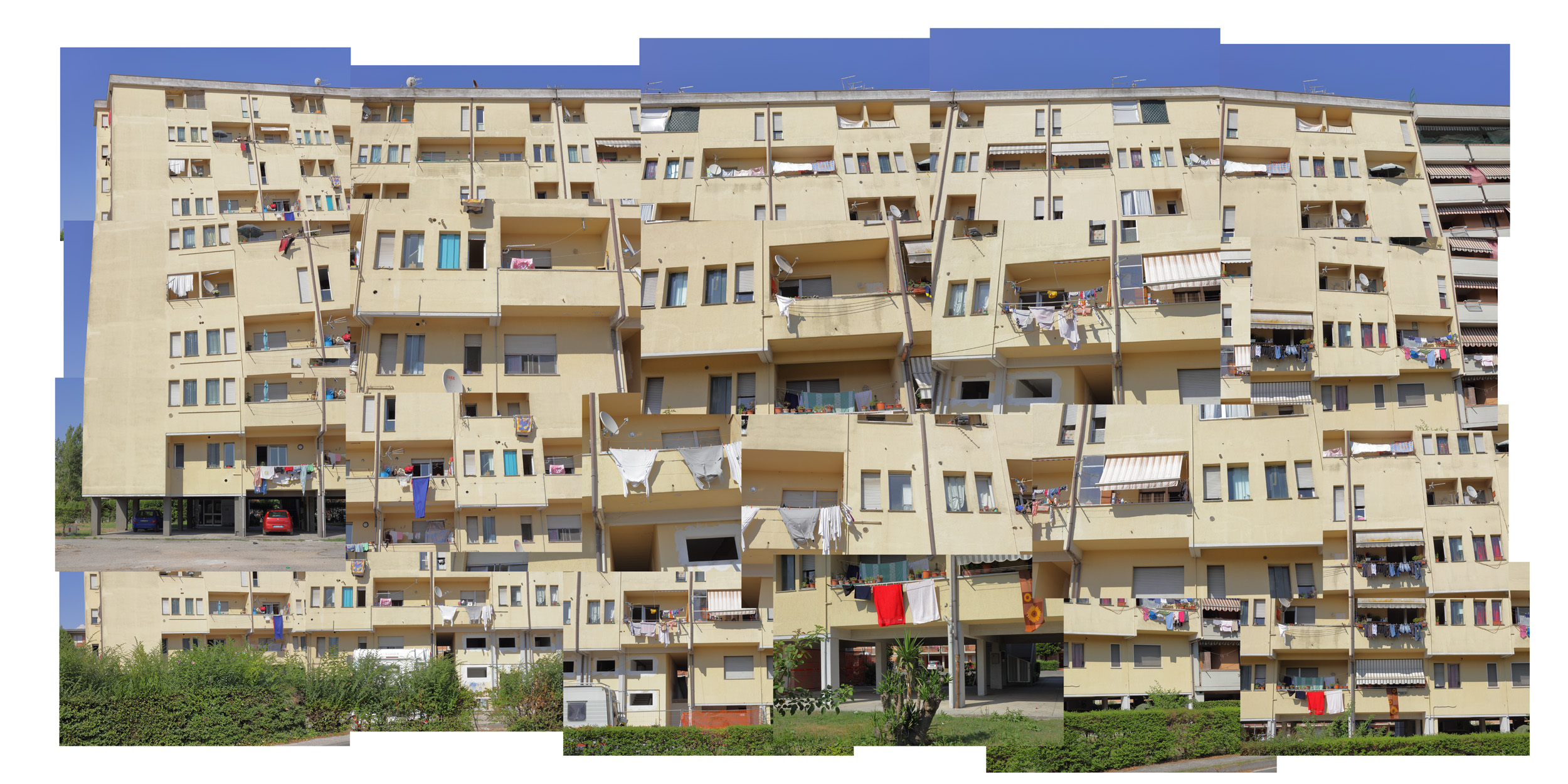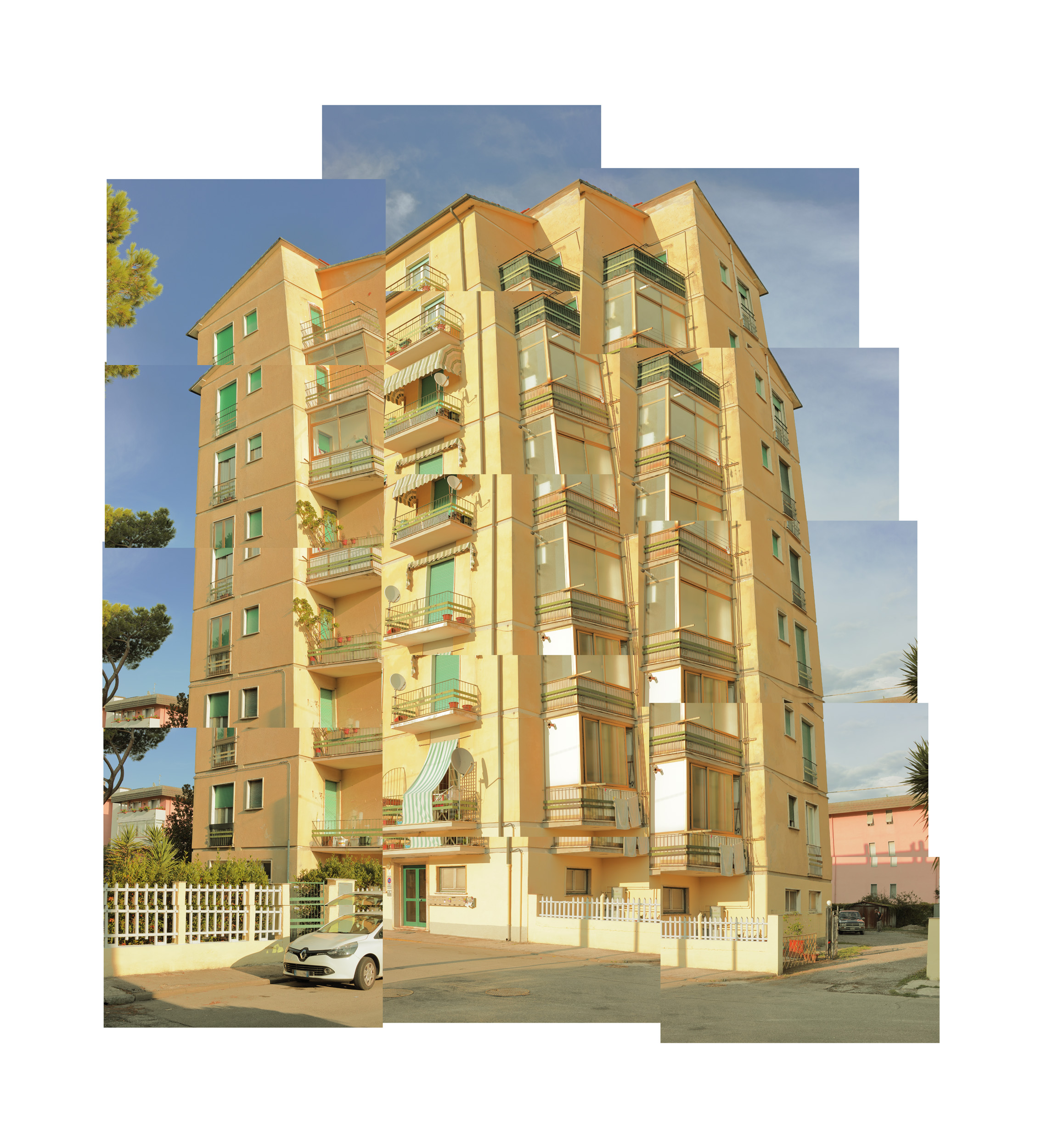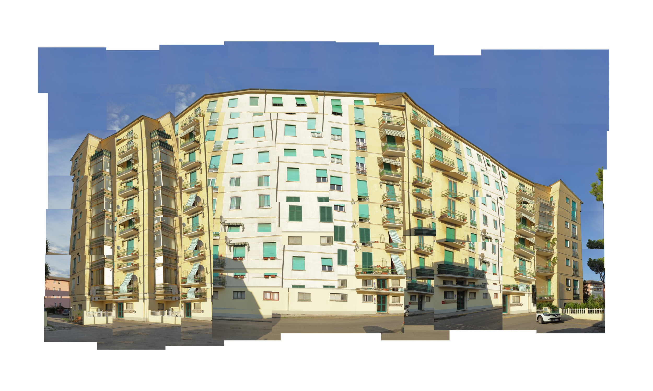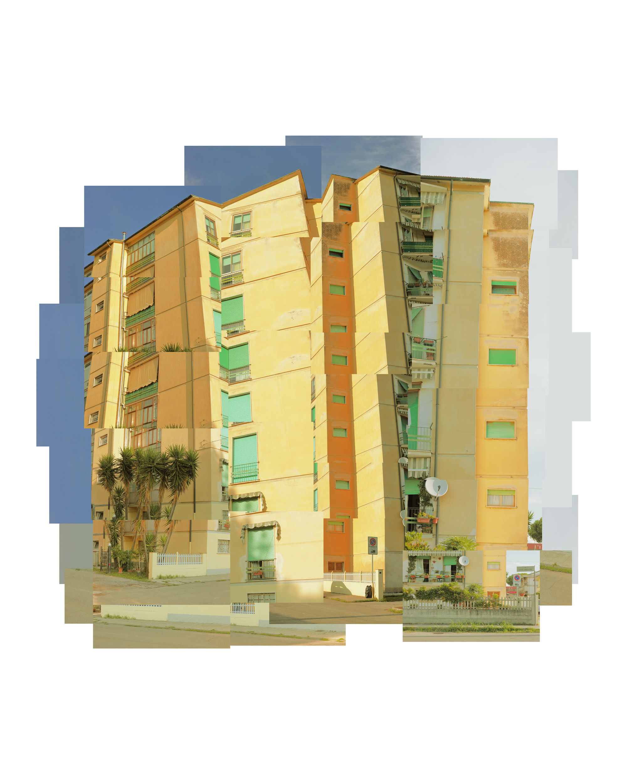 The idea of resuming a palace photographing it with many shots was born by a necessity. Having only a 50 mm on the camera I was able to resume them with various shots for mounting in post-production work. Later I noticed that I could use all these images to discover a different way of creative expression, pushing the points of perspective. So I experienced the combination of some images of a certain point of spot, with other shots taken from another angle or other structure. Mixing the various groups of images I get a new perspective and new aesthetic vision of the structures.