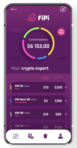 Toate datorită aplicației FiPi, care este o aplicație pentru economisirea automată, regulată și modernă prin achiziționarea de criptomonede. Cea mai importantă caracteristică a aplicației noastre este simplitatea sa - este nevoie de doar trei pași pentru a cumpăra unul dintre cei trei indici criptografici FiPi. Datorită automatizării și principiilor de lucru ultra-ușoare, ne propunem să vizam o gamă largă de utilizatori (nu doar specialiști în monede virtuale). Vom aplica soluții dovedite de pe piețele financiare obișnuite în lumea criptomonedelor, oferind astfel oportunități eficiente de economisire pentru cei cu puține cunoștințe în acest subiect.