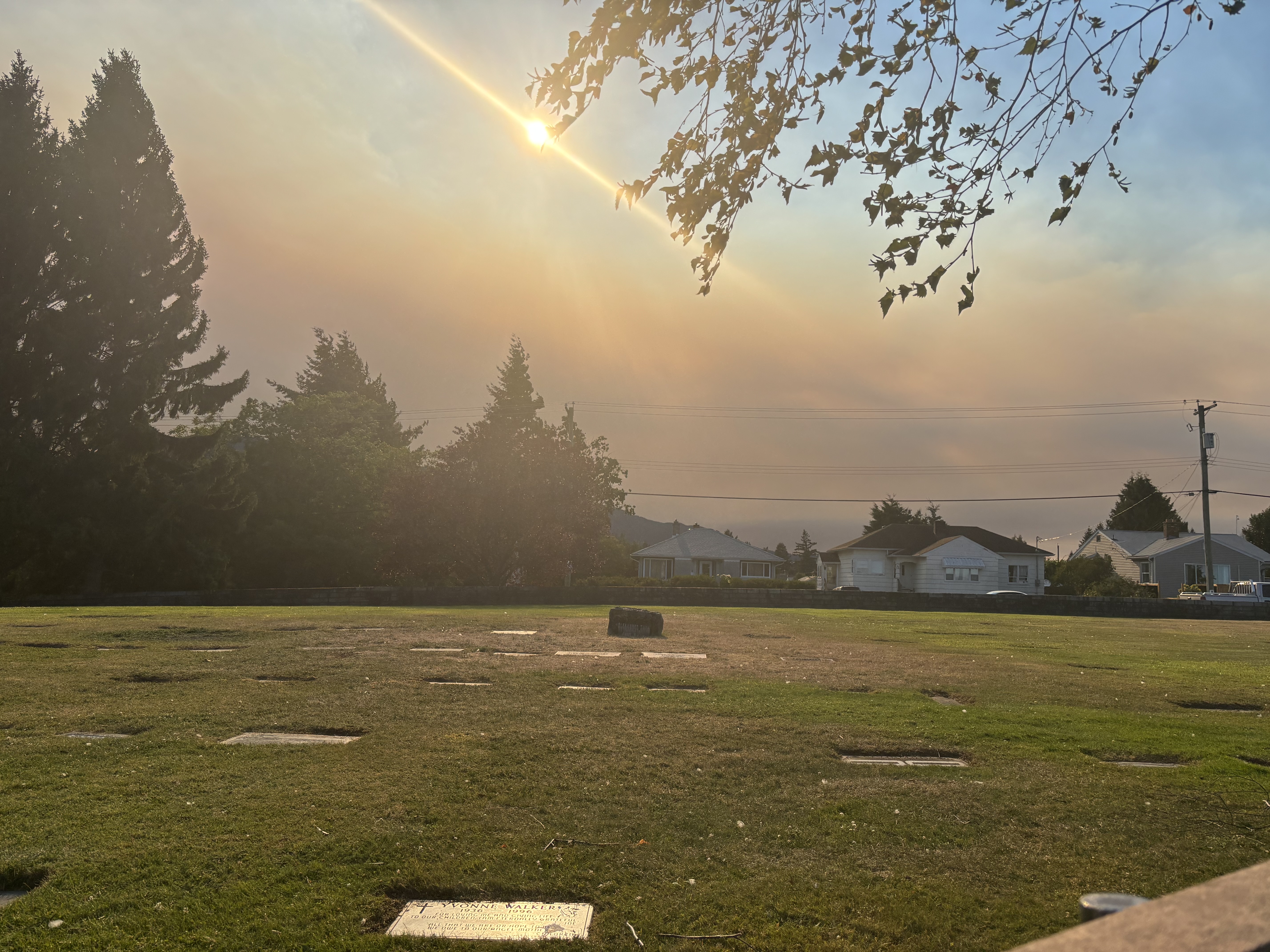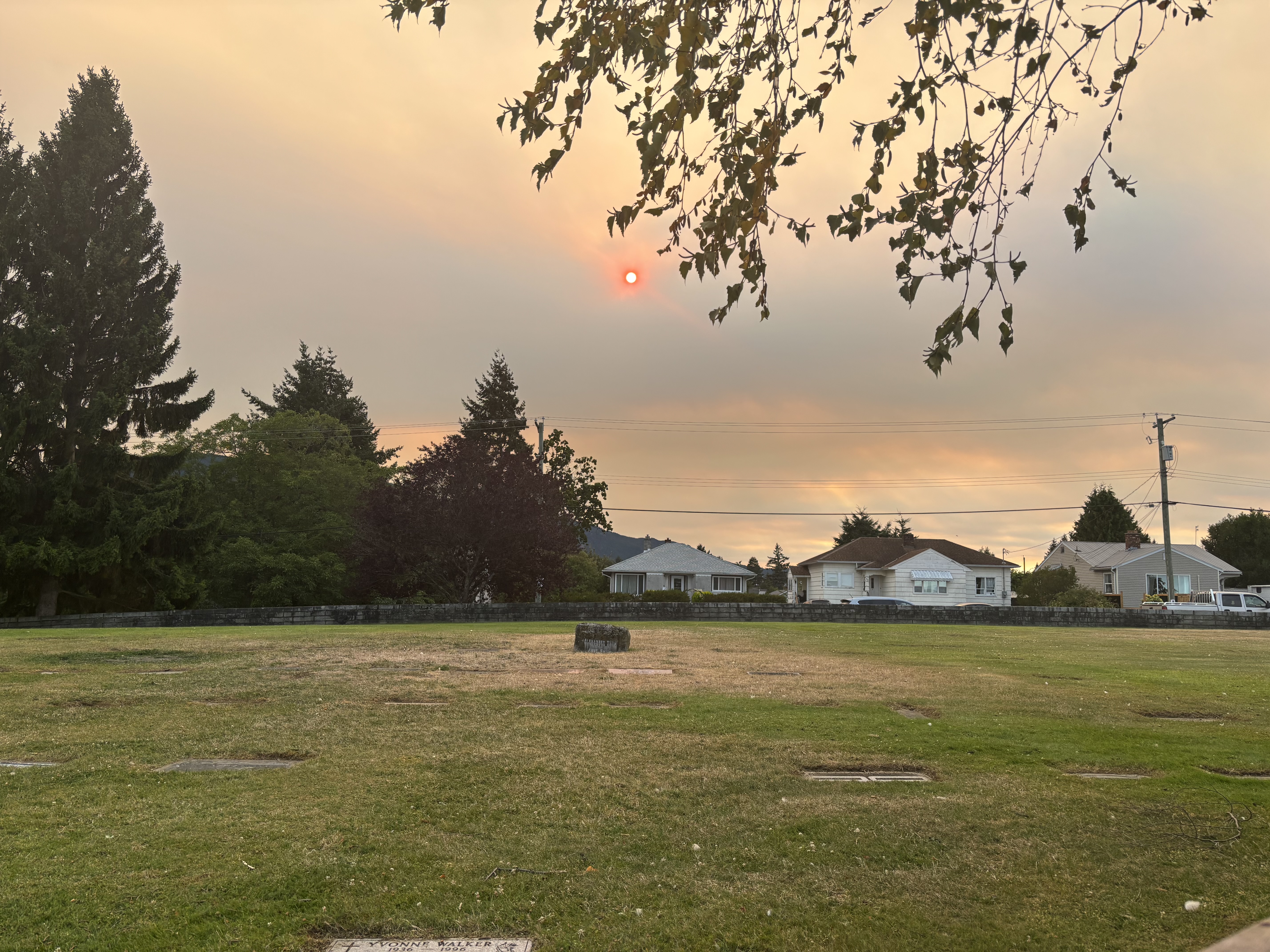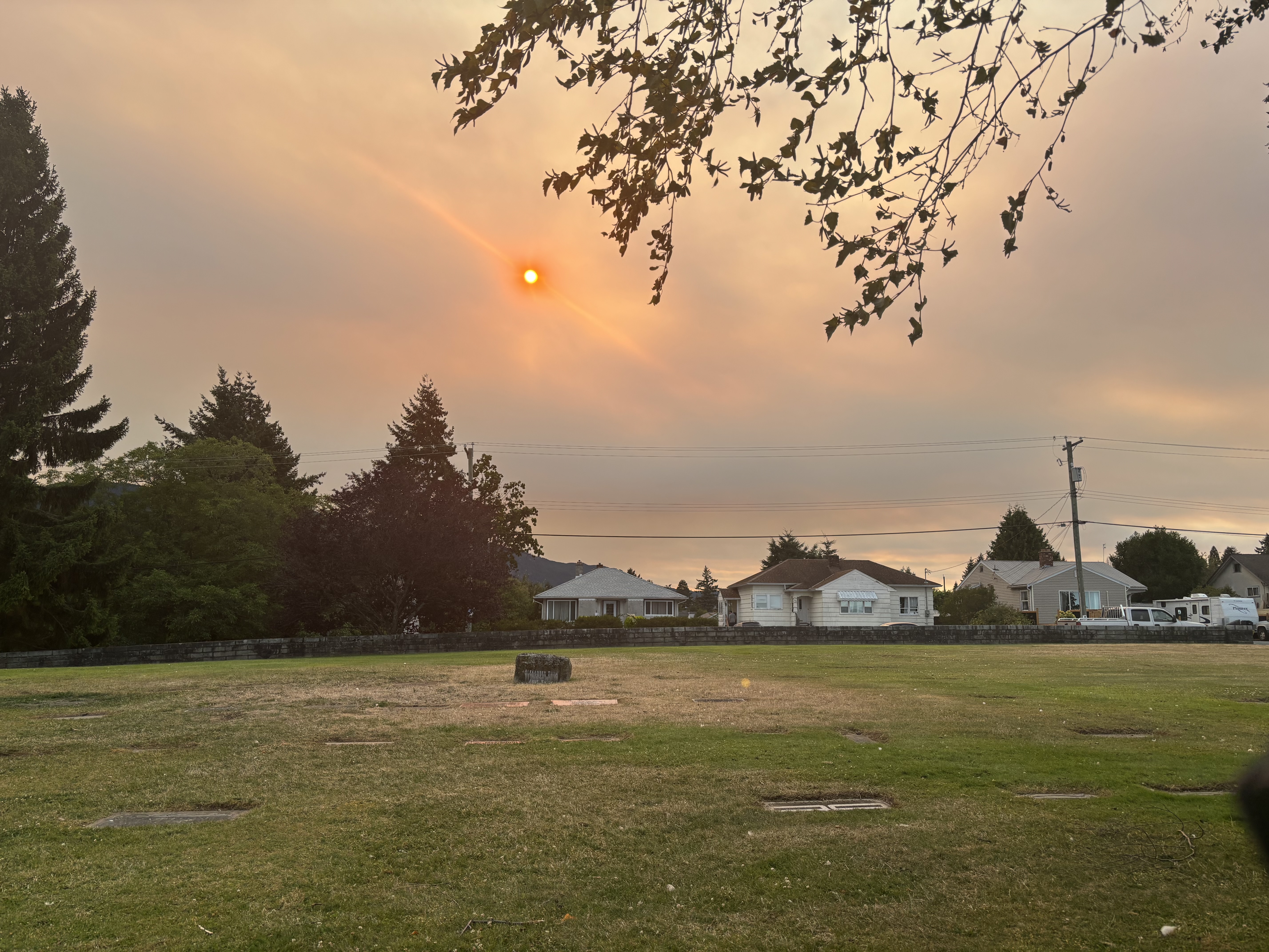 The good news is that there’s an atmospheric river heading our way!!! It should get going later this evening. The smoke is predicted to get worse today before it gets better. The pic I included is from the day before yesterday as the first big smoke wave was coming in. Today is far worse than that.
