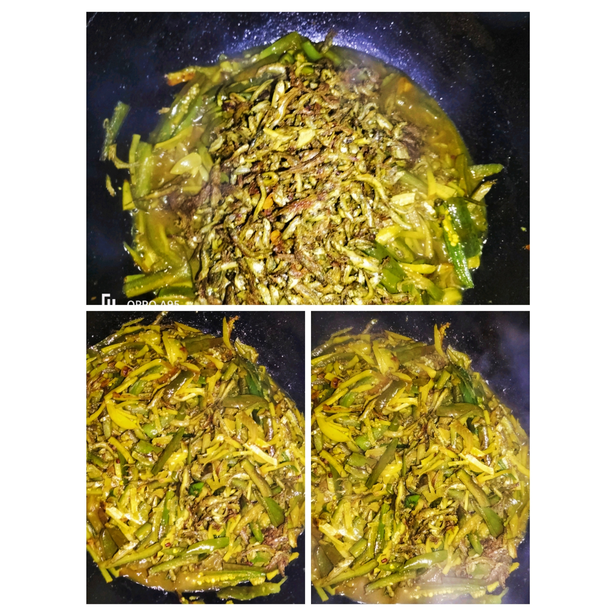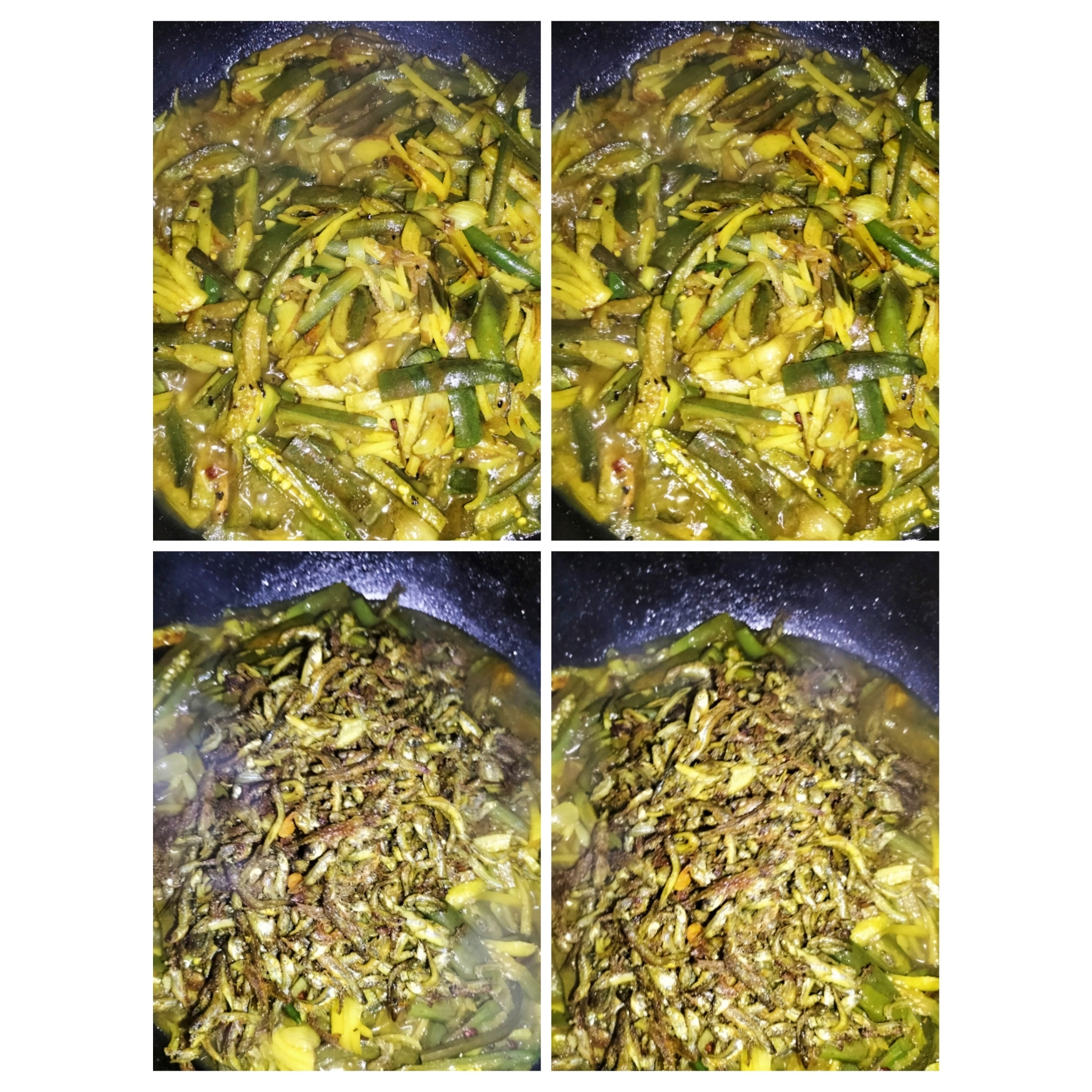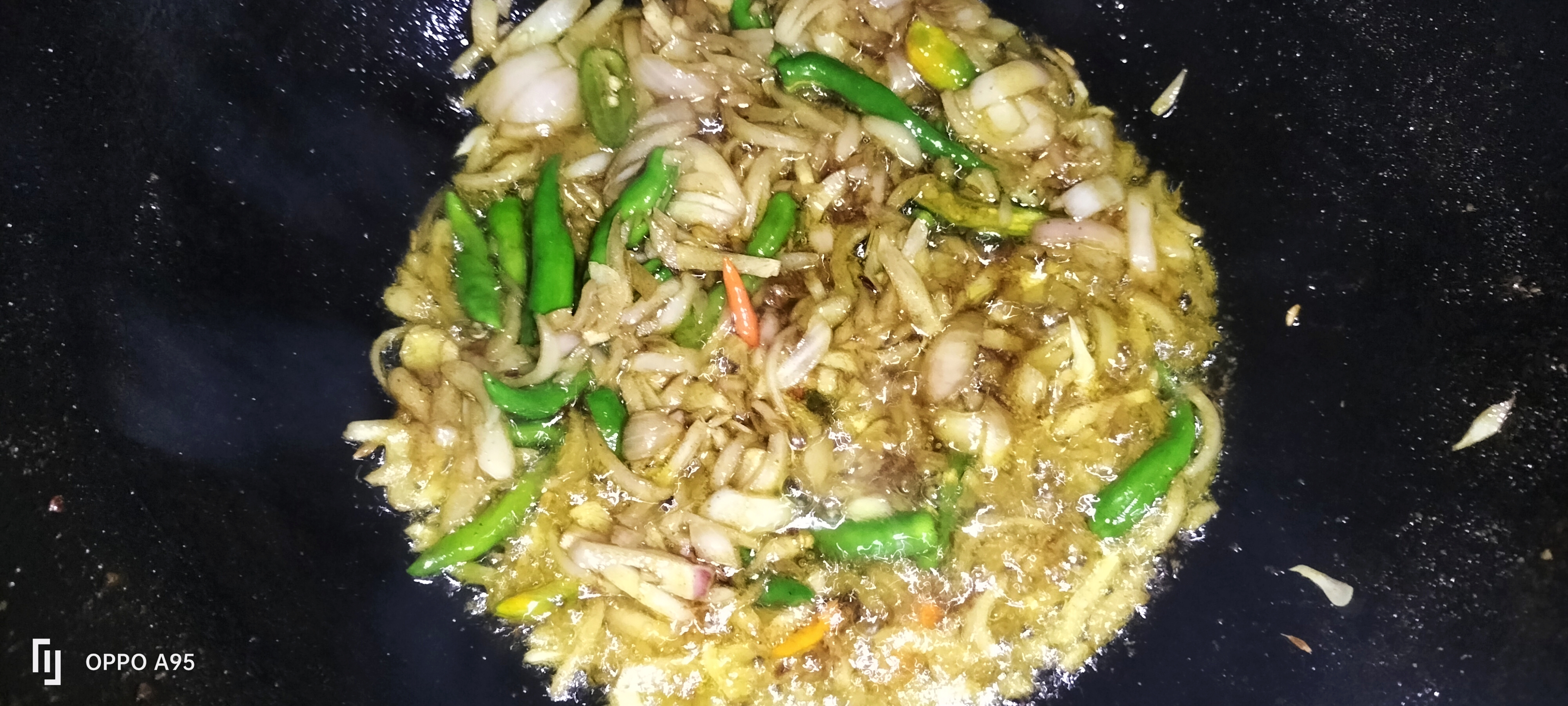 এখন মাছ ভাজা তেলেই পাঁচফোড়ন দিয়েছি ও পেয়াজ মরিচ দিয়ে ভেজে নিয়েছি একটু।