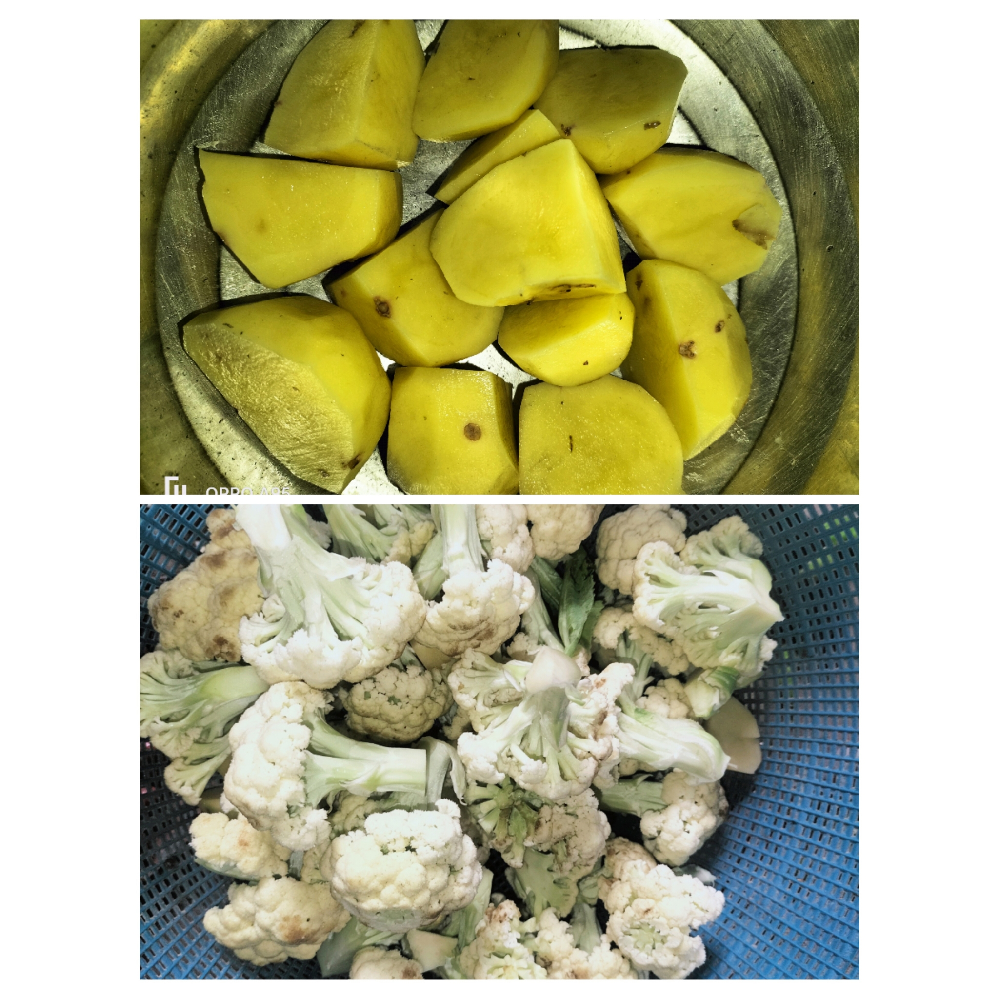 প্রথমে ফুলকপি আলু কেটে ধুয়ে জল ঝড়িয়ে নিয়েছি।