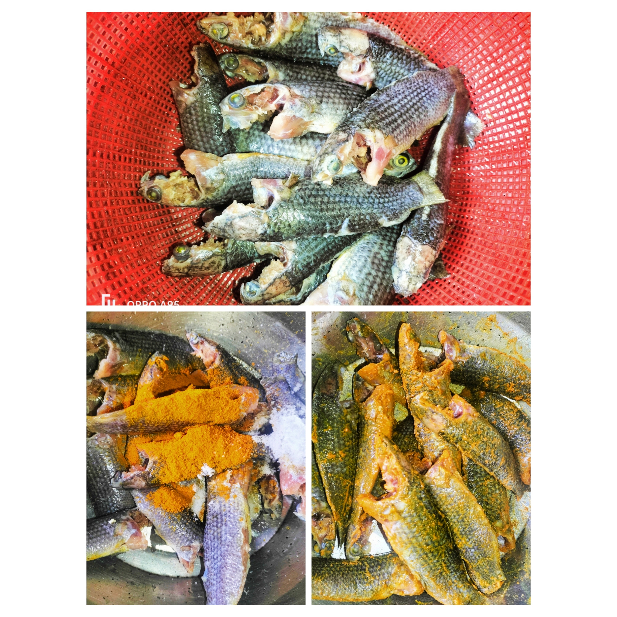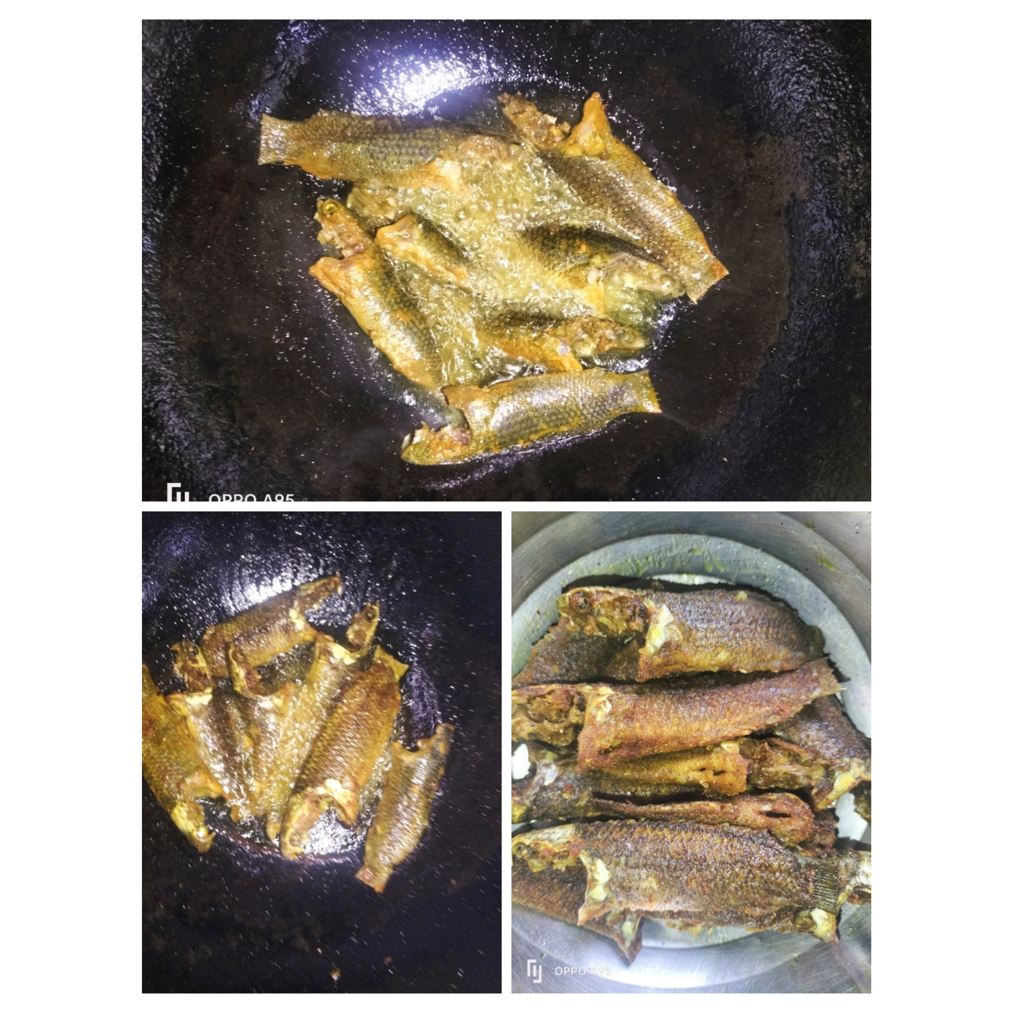 এখন কড়াইয়ে তেল দিয়ে তা গরম করে নিয়েছি এবং আগে থেকে লবণ হলুদ মেখে রাখা মাছ গরম তেলে দিয়েছি ও এপিঠওপিঠ ভালো করে ভেজে নিয়েছি।