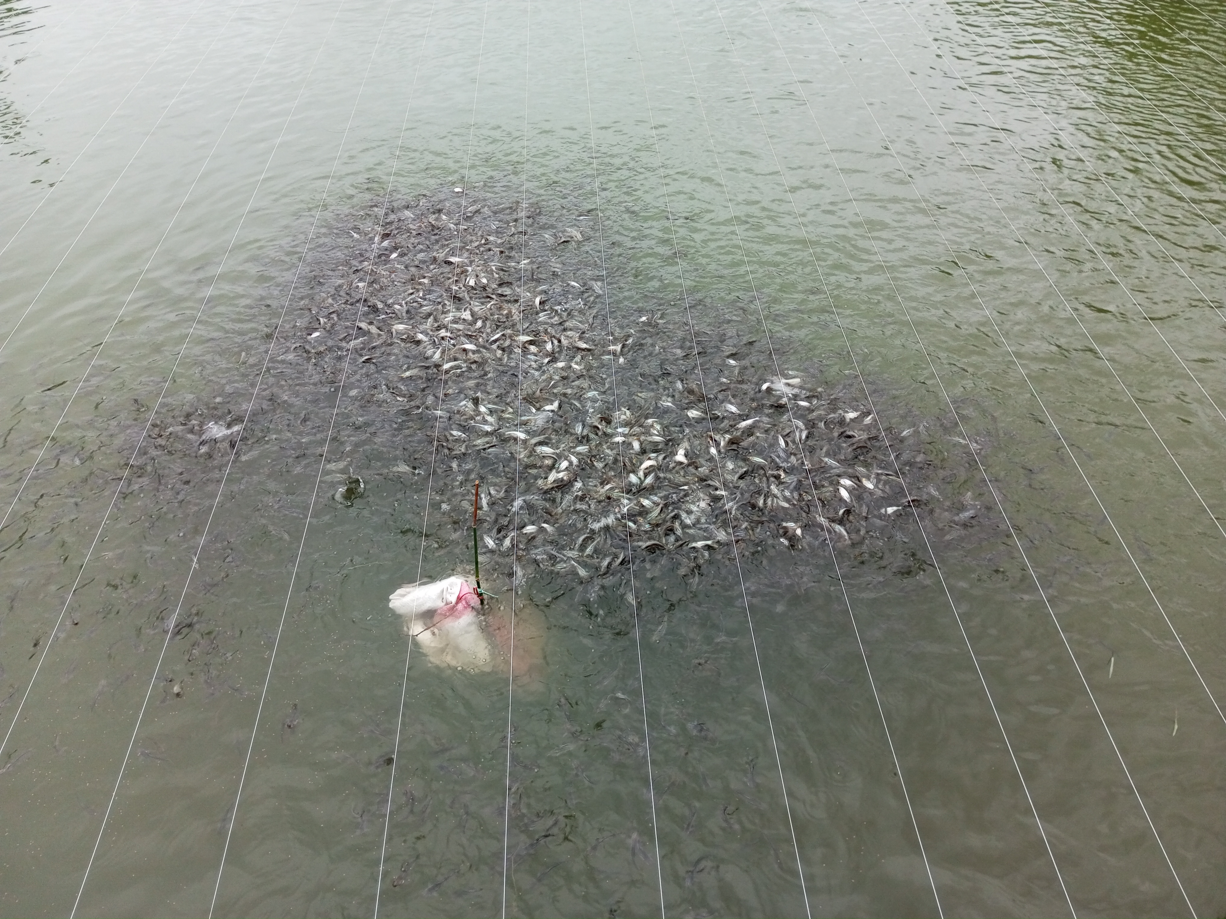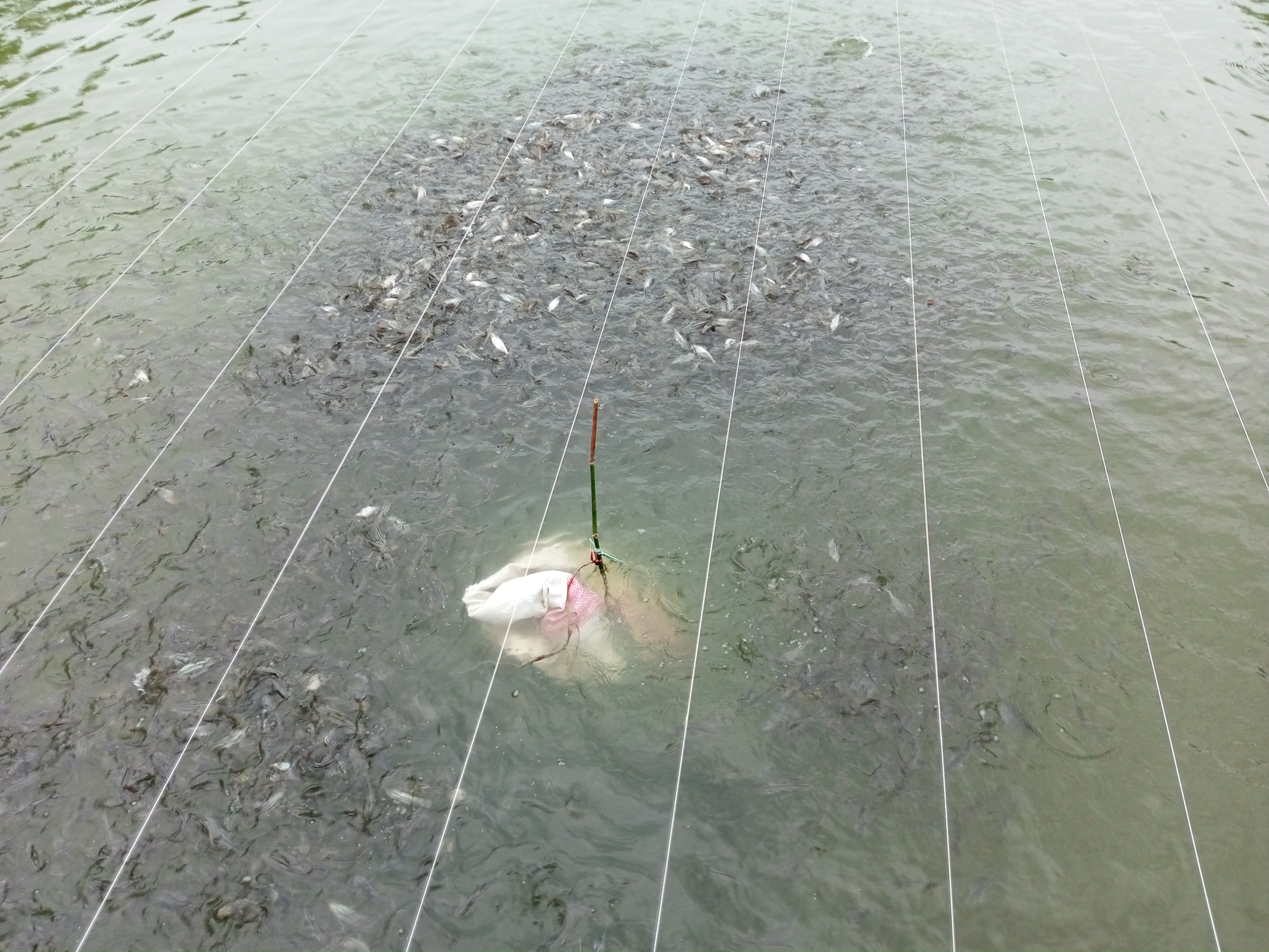 পাঙ্গাস মাছের পোনার খাবার দেওয়া দৃশ্য ফটোগ্রাফি