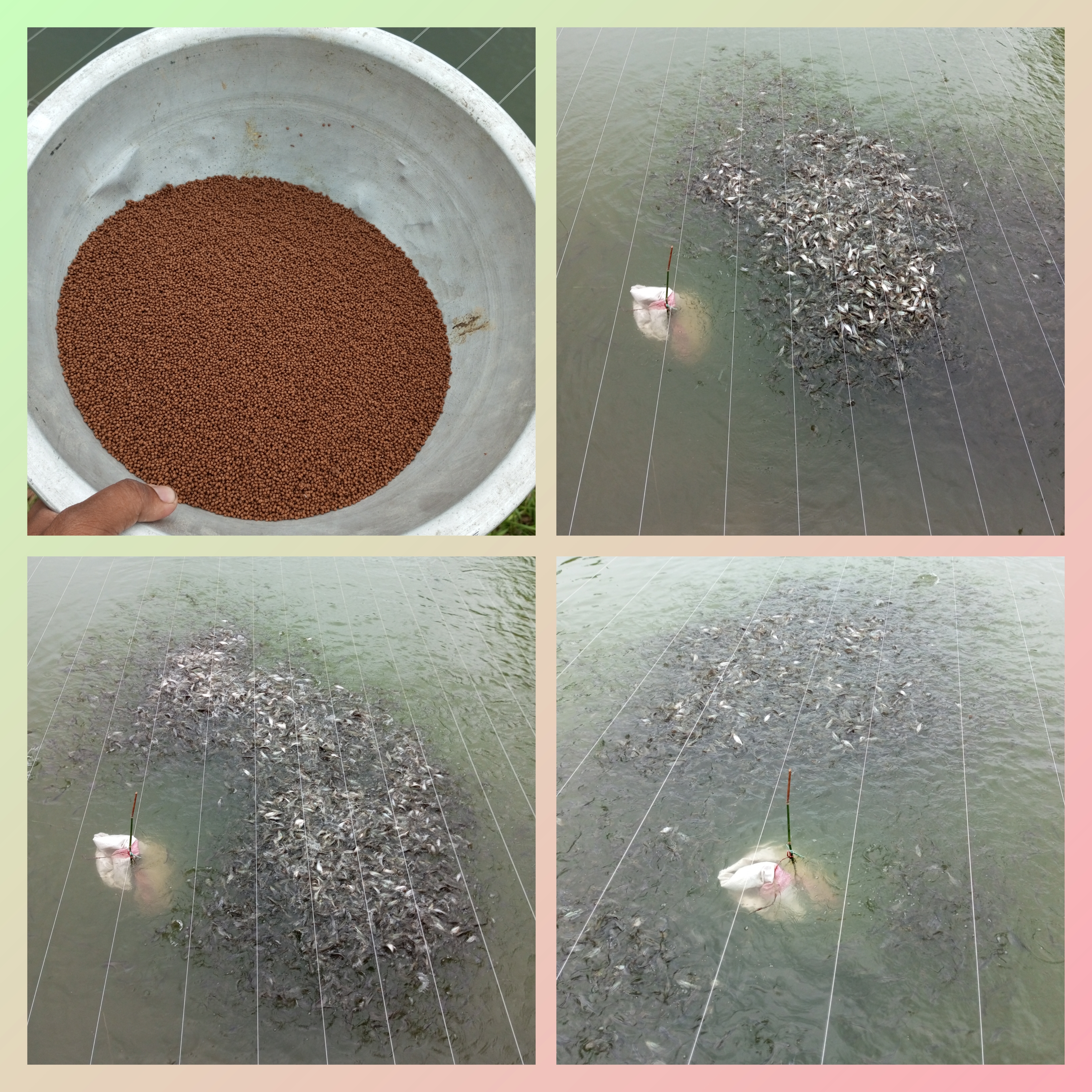 পাঙ্গাস মাছের পোনার খাবার দেওয়ার জন্য একটি গামলাতে ছোট ছোট ভাসমান খাবার নিয়ে পুকুর পাড়ে উপস্থিত হলাম। লক্ষ্য করলাম পানির মধ্যে আশেপাশে মাছগুলো নড়াচড়া করছে।