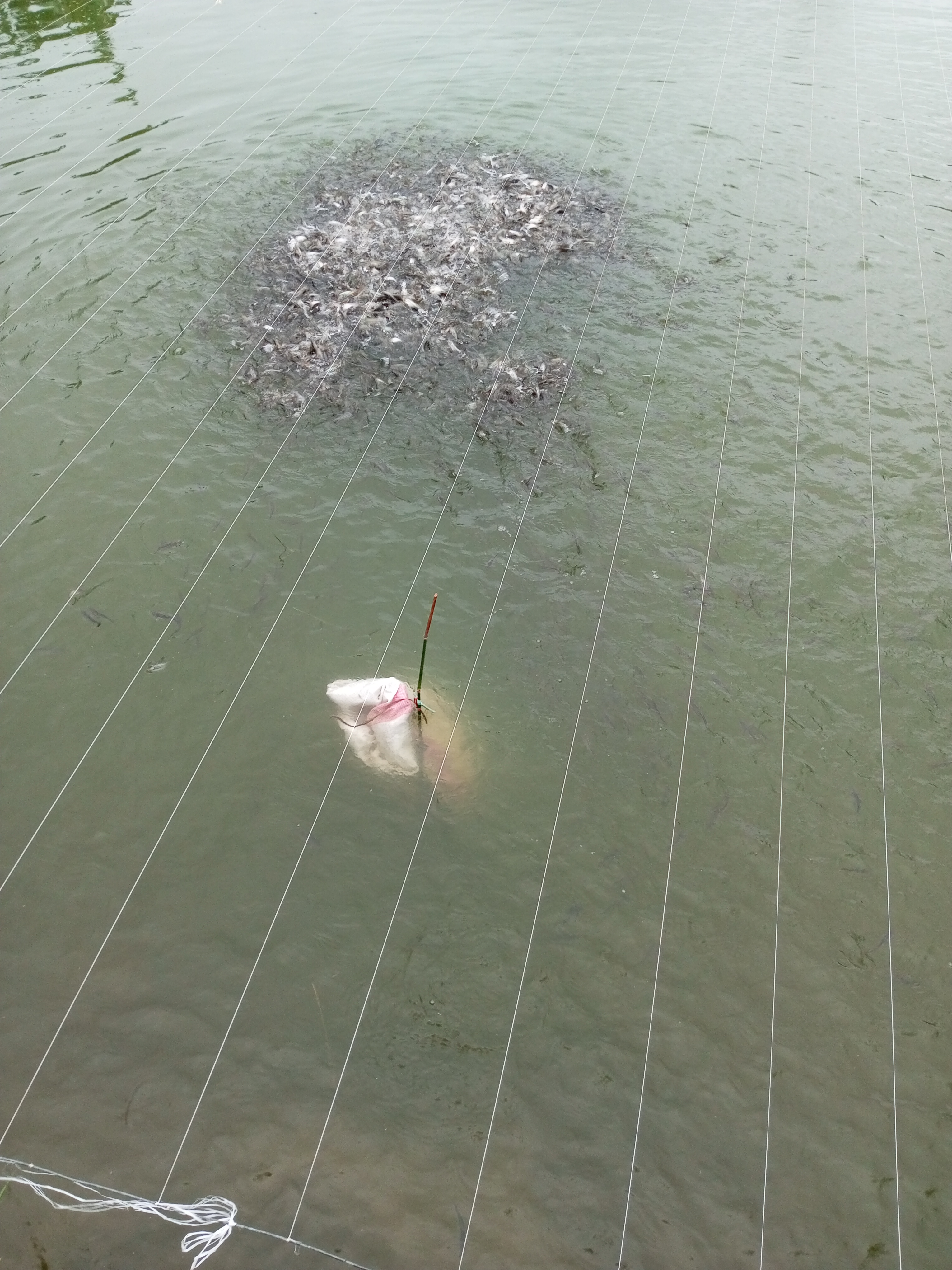 আমি পাঙ্গাস মাছের খাবার গুলো একমুঠো করে খুব নিকটে দিতে থাকলাম। পাঙ্গাস মাছের পোনা যখনি বুঝতে পারল খাবার দেওয়ার স্থানে খাবার পড়ছে,তাই তখন তারা ঝাক বেঁধে দৌড়িয়ে চলে এলো এবং খাবারগুলো কাড়াকাড়ি করে খাওয়া শুরু করল। আপনাদের মনে প্রশ্ন জাগতে পারে যে আমি যেখানে খাবার ফেলছি ওখানে একটি সাদা বস্তায় কিছু বাধা রয়েছে মনে হচ্ছে। আসলে ওখানে সরিষার খোল ভেজানো রয়েছে। একদিন পর একদিন দেড় থেকে দুই কেজি পরিমাণে ভিজানো কল ছিটাতে হয় পুকুরে এতে মাছের বৃদ্ধি বেশি হয় এবং পানির উপরে খাবার উৎপাদন হয়।