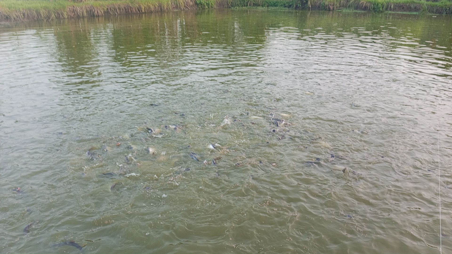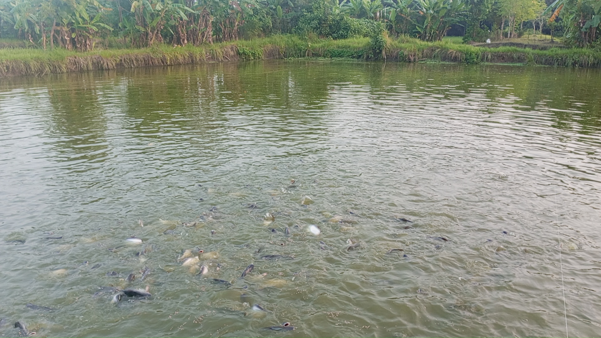 এখানে দেখতে পারছেন পাশাপাশি দুইটা পুকুর থাকায় রেডি খাবার দুইটা পুকুরে দিতে পারছেন। দৃশ্যটা বেশ ভালো লাগছিল আমার ।এর পরে আমাদের পুকুর,দেখতে পাচ্ছেন আমার কলা গাছ গুলো। আমাদের পাঙ্গাস মাছগুলো অটো মিল থেকে খাবার তৈরি করে এনে খাওয়ায়। আমার চাচা অবশ্য অটমিলের খাবার খাওয়াতে পছন্দ করে না কিন্তু বেশি দাম দিয়ে ভাসমান আর ডোবা খাবারগুলো কিনে আনে বা বাকি করে আনে। তবে এতে যে প্রচুর পরিমাণ খরচ হয়ে যাচ্ছে না জানি কেমন লাভ করতে পারবে। এক মাস আগে পাঙ্গাস মাছের পুকুরে দাম ছিল ১৫০ টাকা কেজি কিন্তু এখন হয়ে গেছে ১৩০ টাকা কেজি। যে খাবারগুলো খাওয়াচ্ছে এই খাবারের দাম ১৬০০ টাকায় ২৫ কেজি। তাহলে বুঝতে পারছেন কেমন লাভ হওয়ার সম্ভাবনা দেখা যাক তারপরে কি হয় শেষ পর্যন্ত। আবারও চেষ্টা করব পরবর্তী আপডেট আপনাদের মাঝে তুলে ধরার জন্য।