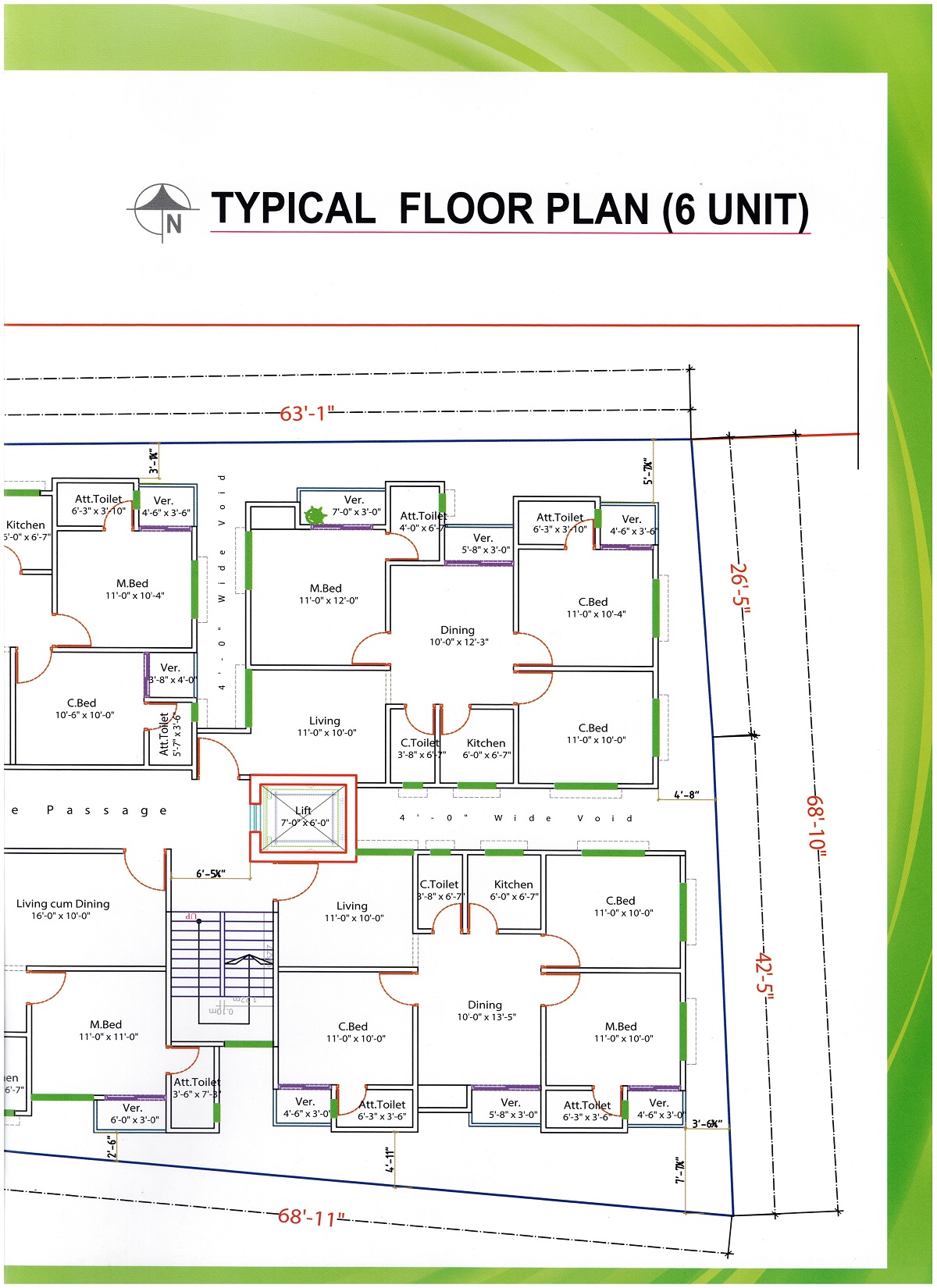 ইউনিটের বিবরণ : প্রতি ফ্লোরে ৬টি ফ্ল্যাট
