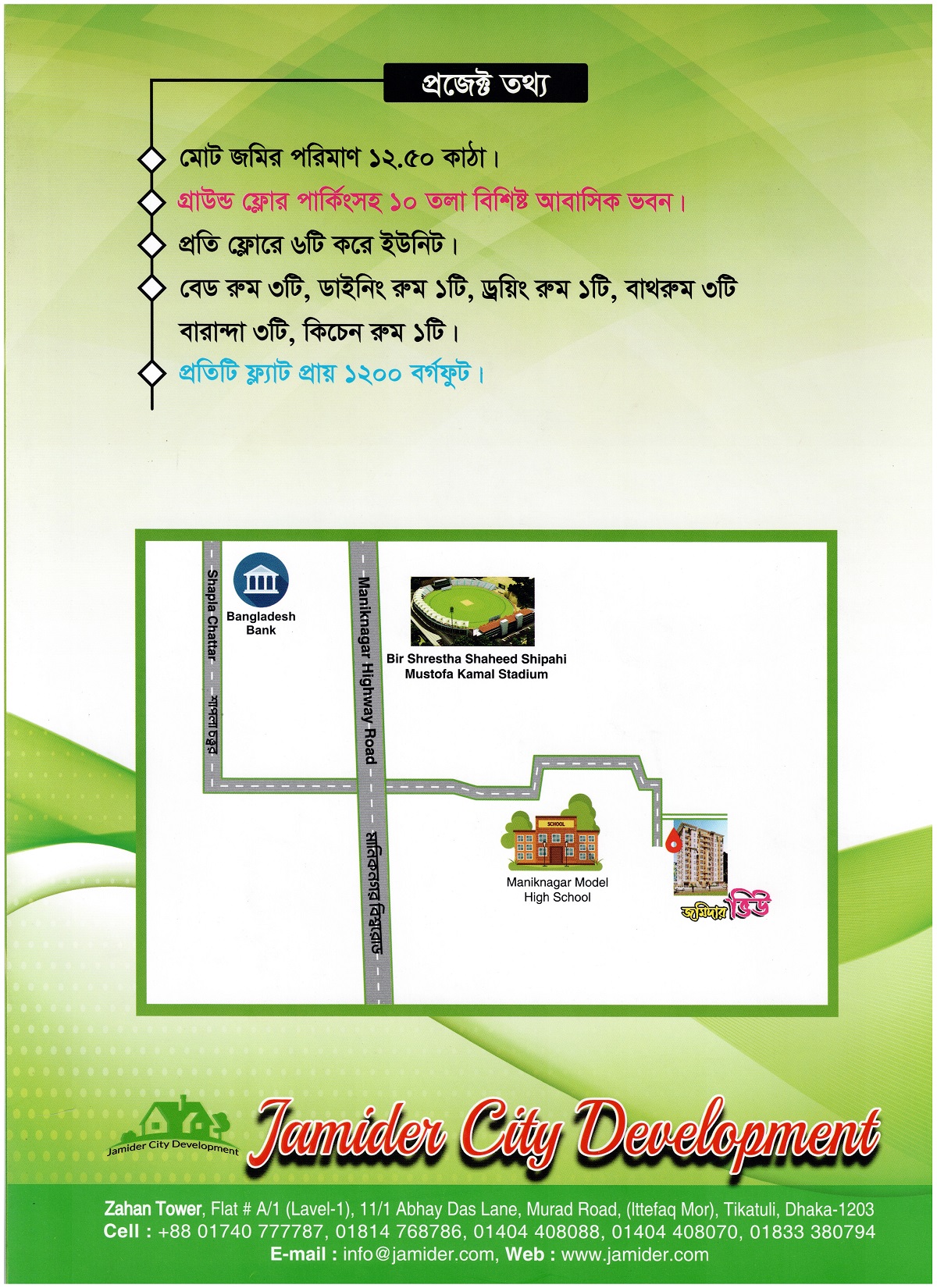 ফ্লোর স্পেস : প্রতি ফ্লোরে ১২.৫০ কাঠা ৭২০= ৯০০০ বর্গফুট