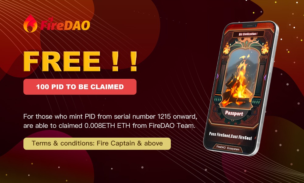 1️⃣ Mint your PID: Visit our official website at app.firedao.co/MintPassport and mint your PID. Make sure your PID series number falls from 1215 onwards.