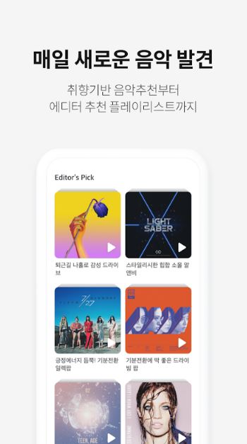 내가 원하는 음악을 끊임 없이 발견할 수 있도록 매일매일 신선한 음악을 추천해 드립니다.