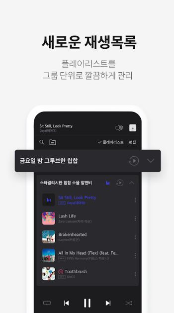 이제 수 천곡이 담긴 재생목록 안에서도 헤매지 않고 플레이리스트로 쉽게 관리하고 감상할 수 있습니다.