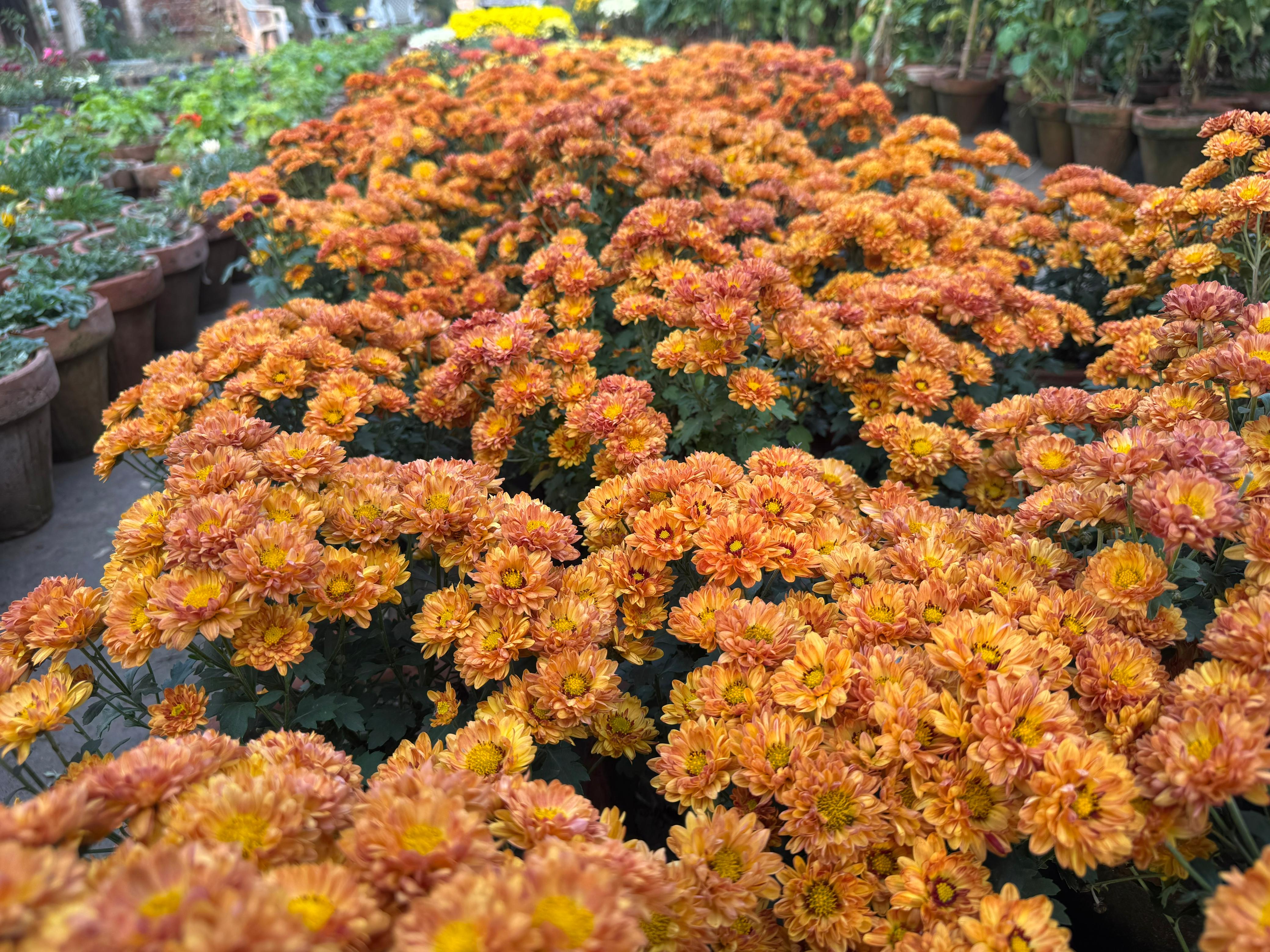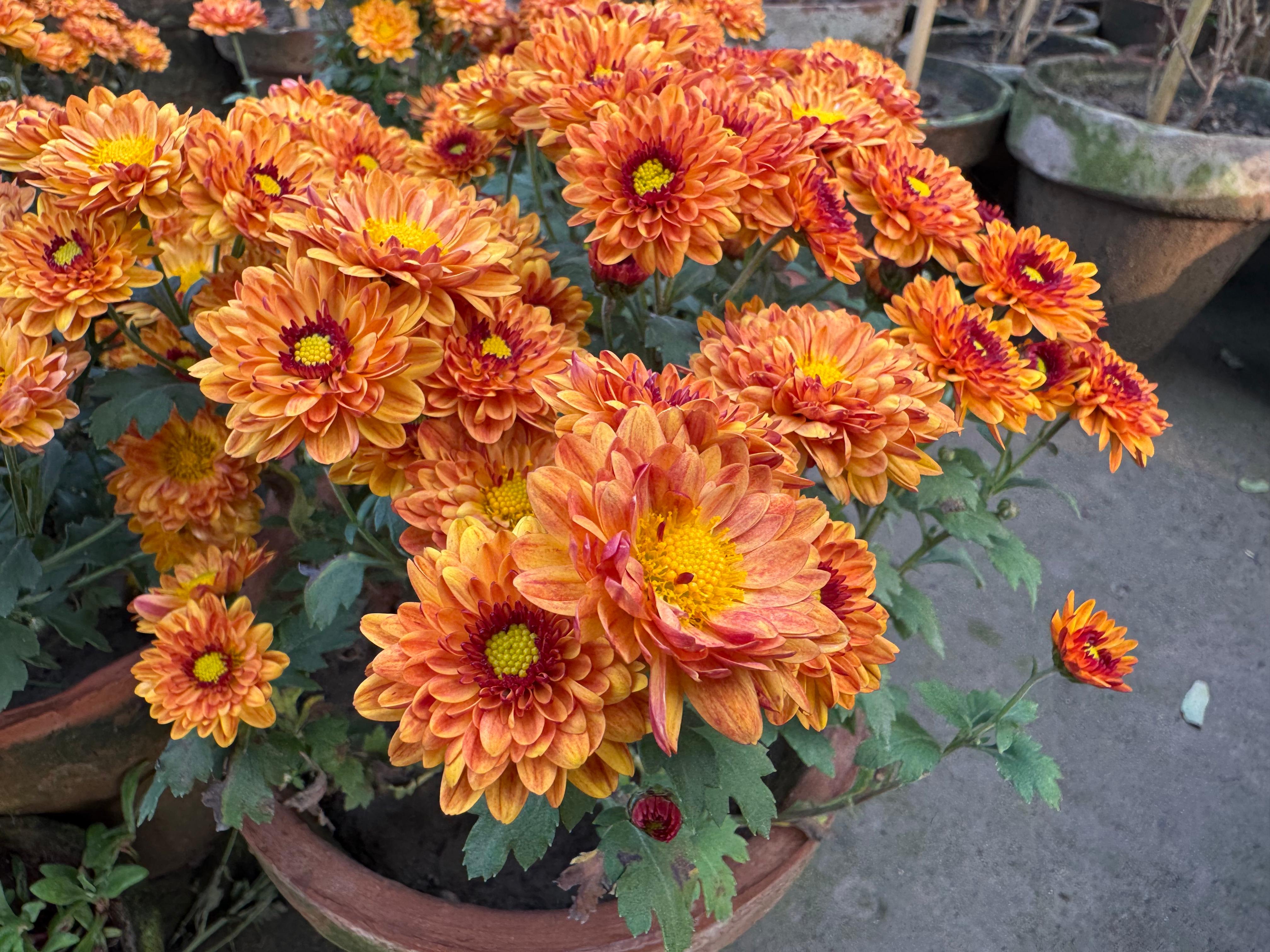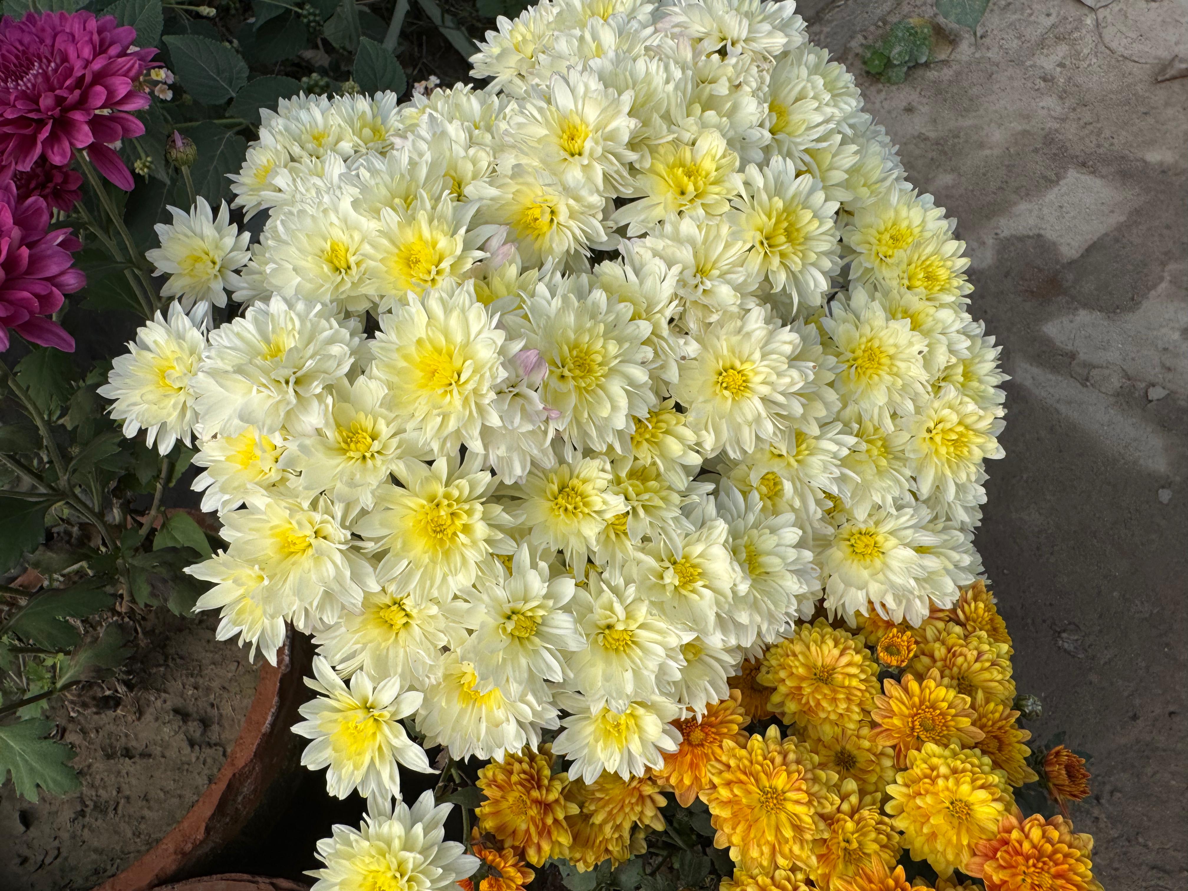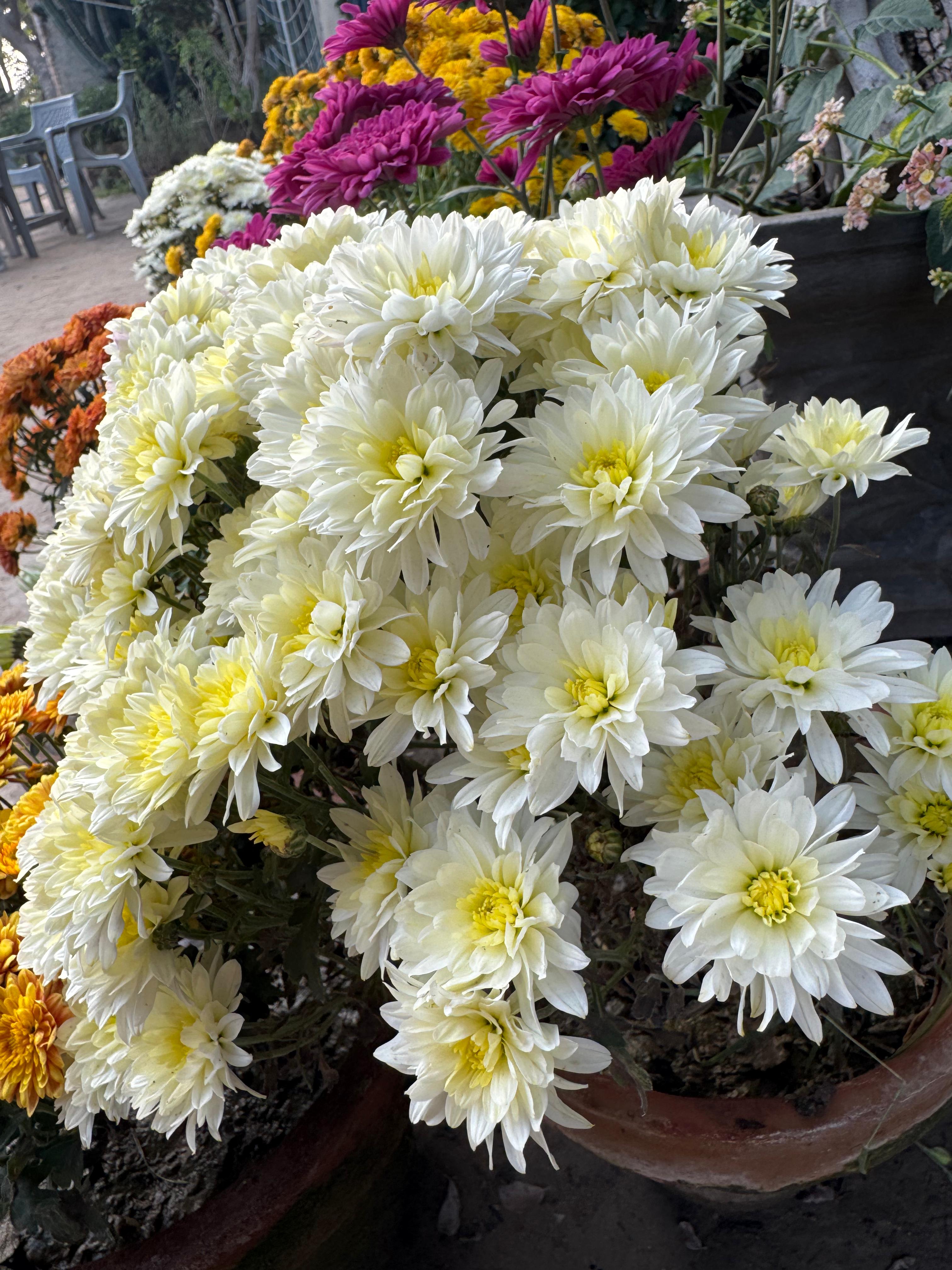 I am new in this community. Today I am going to share with you an other beautiful flower 🌷. This flower is called chrysanthemum. These are popular autumn - flowering plant known for their wide range of colours and flower forms, from simple daisy like to complex pompom shapes. It is also called garden mums. They are widely used in landscaping for border and containers as seen in the various pots 🍲. In the backgrounds . It is grown native to Asia, , particularly china over 3000 years for both ornamental and traditional medicines..