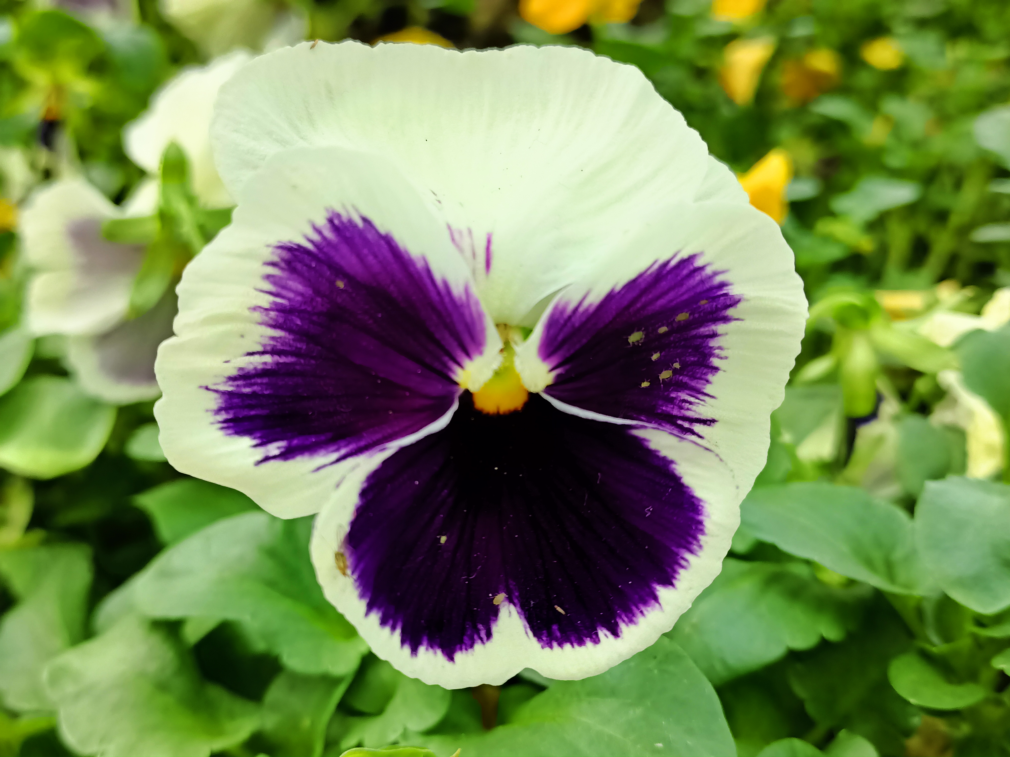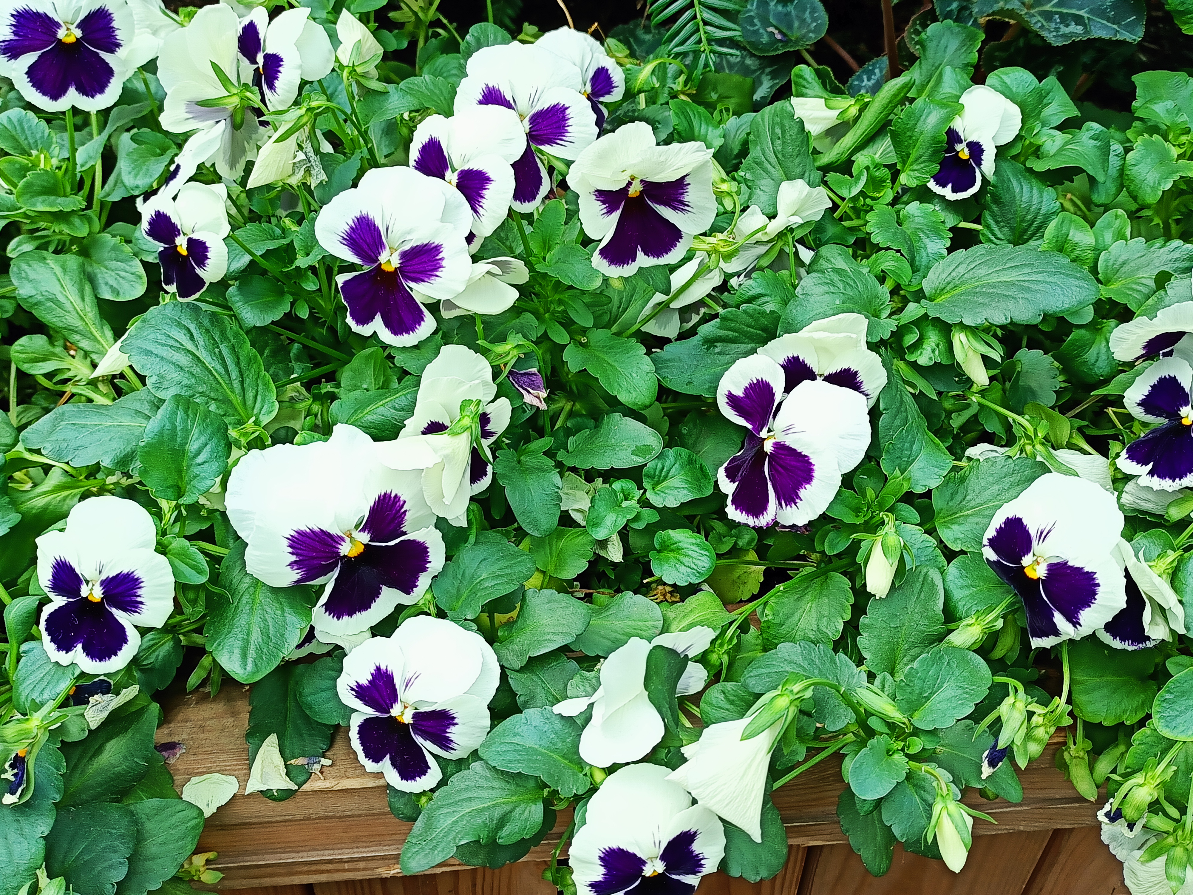 The petals of the garden pansy are usually white or yellow, purplish, or blue. They grow well in sunny or partially sunny areas in well-draining soils. They should never be over-watered. Most garden pansies bloom the first year, some in as little as nine weeks after sowing.