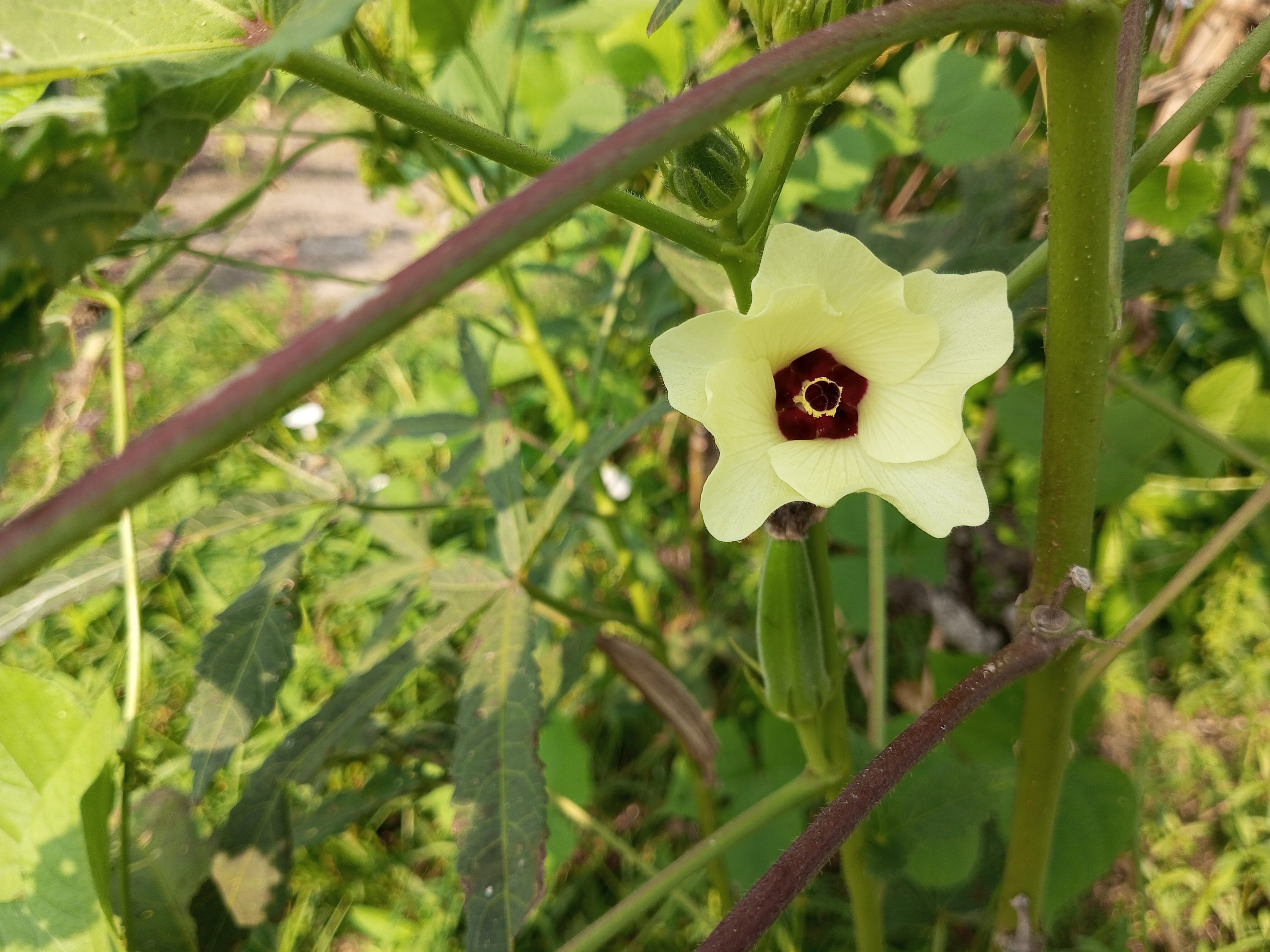 এটা আমার সবজি বাগানের ঢেঁড়স ফুল। আমি যখন বিভিন্ন প্রকার সবজি উৎপাদন করে থাকি আমার বাগানে প্রায় লক্ষ করে থাকি বিভিন্ন শাকসবজির ফুল হয়ে থাকে, তবে তার মধ্যে এই ফুল এতটাই অপরূপ হয়ে থাকে কিছুটা সাদা আর হলদে টাইপের হয়ে থাকে বলে দেখতে খুবই ভালো লাগে। মাঝখানে থাকা ছোট্ট একটি ফুলের শীষ আরো সৌন্দর্য বাড়ায়।
