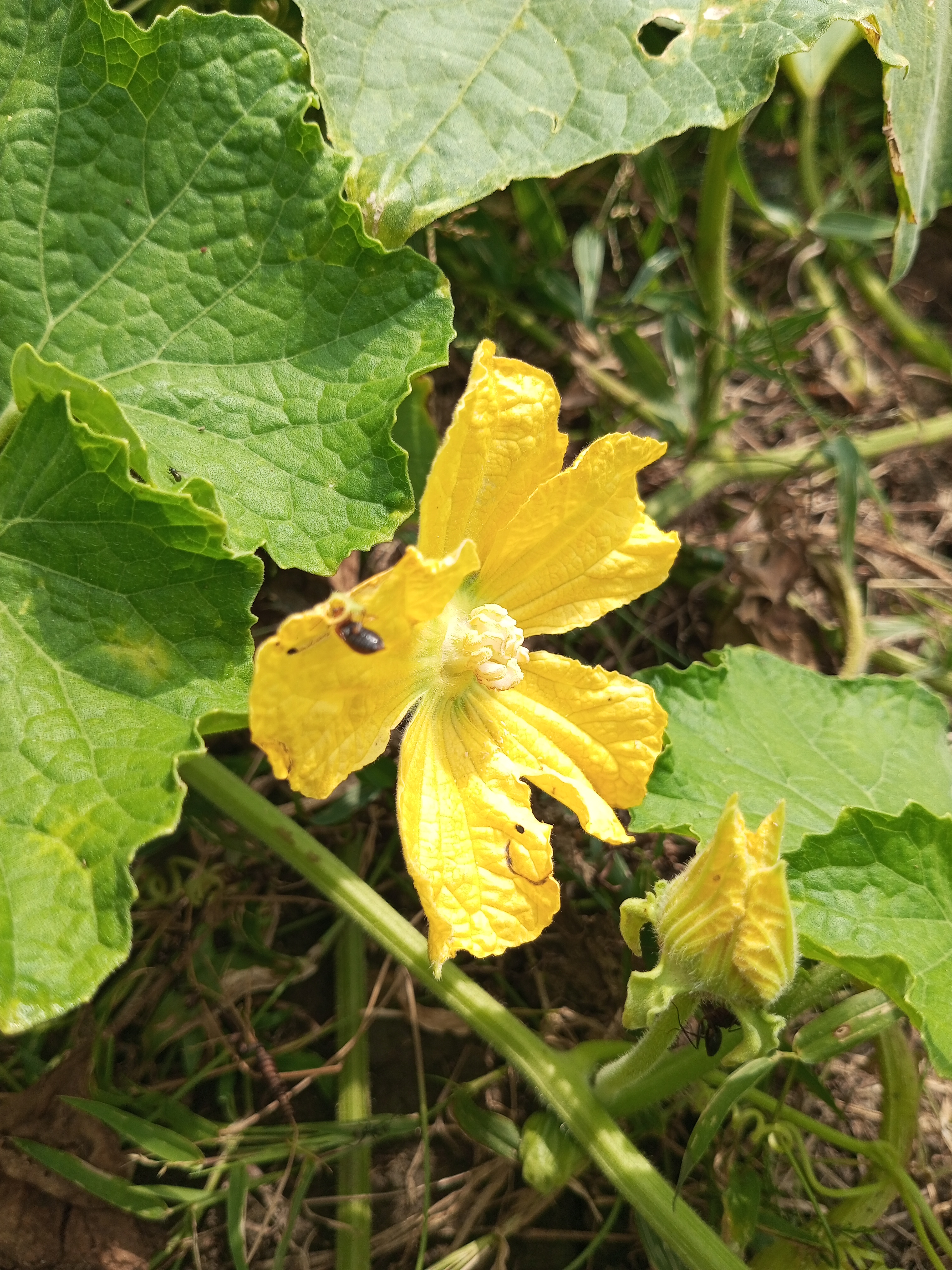 এটা আমার বাগানে ফুটে থাকা চালকুমড়ার ফুল। আপনারা হয়তো সকলেই এই ফুলের সাথে সুপরিচিত। কিছুদিন পরে চাল কুমড়া আর নতুন কলায়ের ডাল দিয়ে তৈরি হবে বড়ি। তবে তার পূর্বে কিন্তু এই ফুলের জন্যই আমরা সেই বড়ি খেতে পারব। দেখতে পারছেন এভাবে বিভিন্ন পোকা মাকর পুরুষ ফুল থেকে পরাগায়ন ঘটিয়ে ফল হতে সহায়তা করে থাকে।