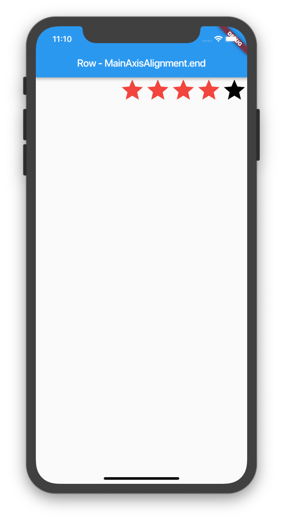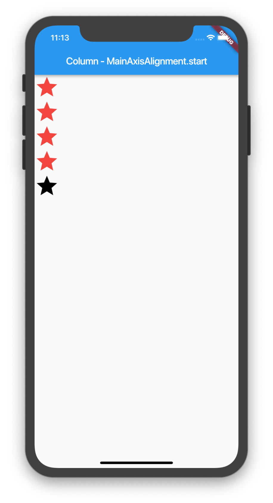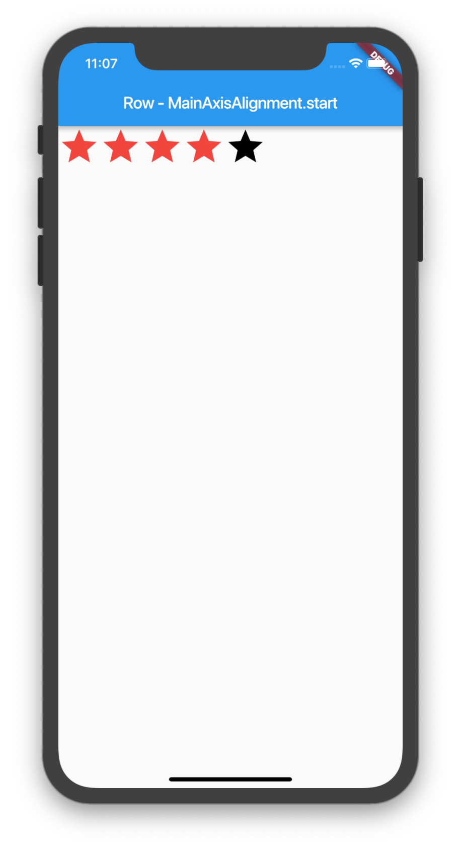 mainAxisAlignment: MainAxisAlignment.start ( start, center, end )위와 같이 변형하여 테스트 한 결과 입니다.