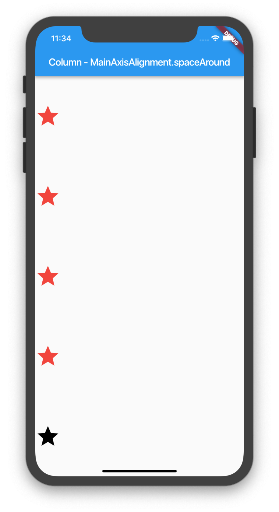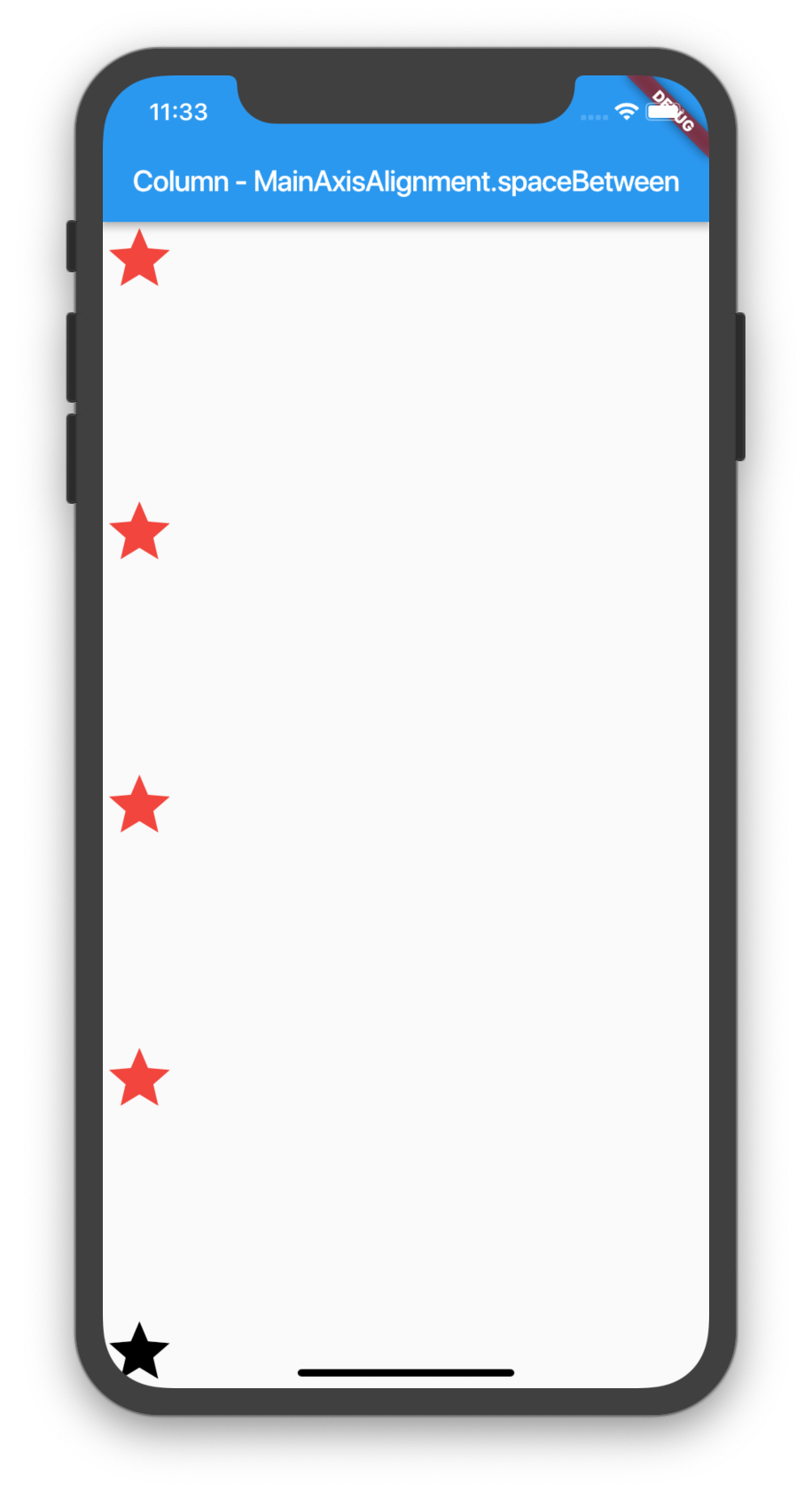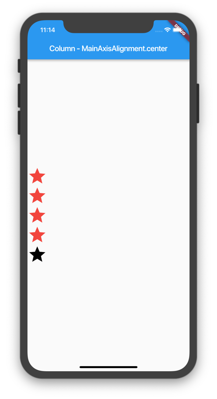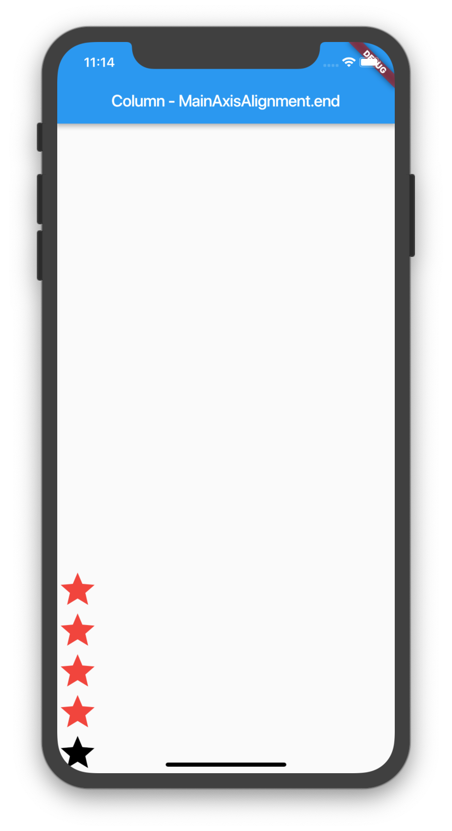 mainAxisAlignment: MainAxisAlignment.start ( start, center, end )위와 같이 변형하여 테스트 한 결과 입니다.