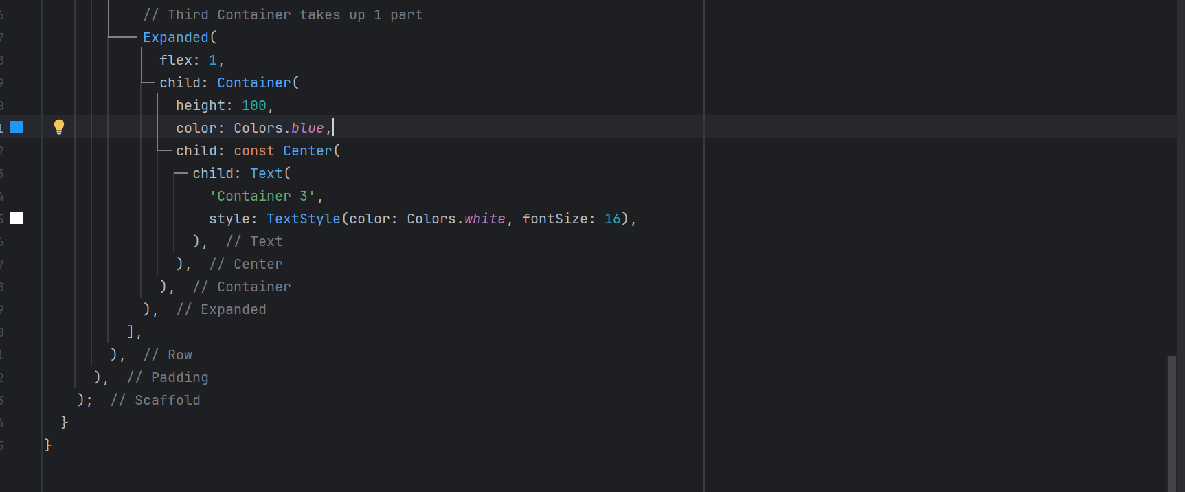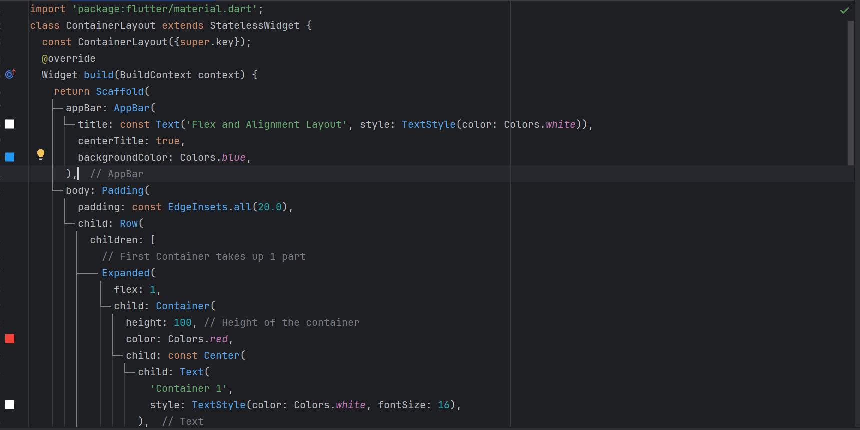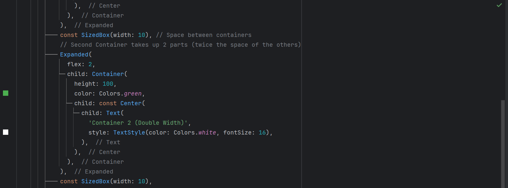 Flex is another important feature to align the widgets on the screen properly. It helps to create a responsive user interface. And we can divide the screen into different parts as per our requirements. And we can use it to align the containers on the screen.