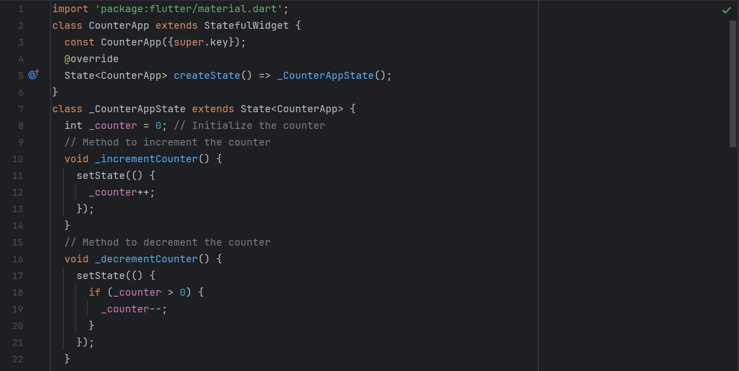 _counterand I initialized it with 0. It will be used to store the value of the increment and decrement. - Then I have defined increment and decrement methods.