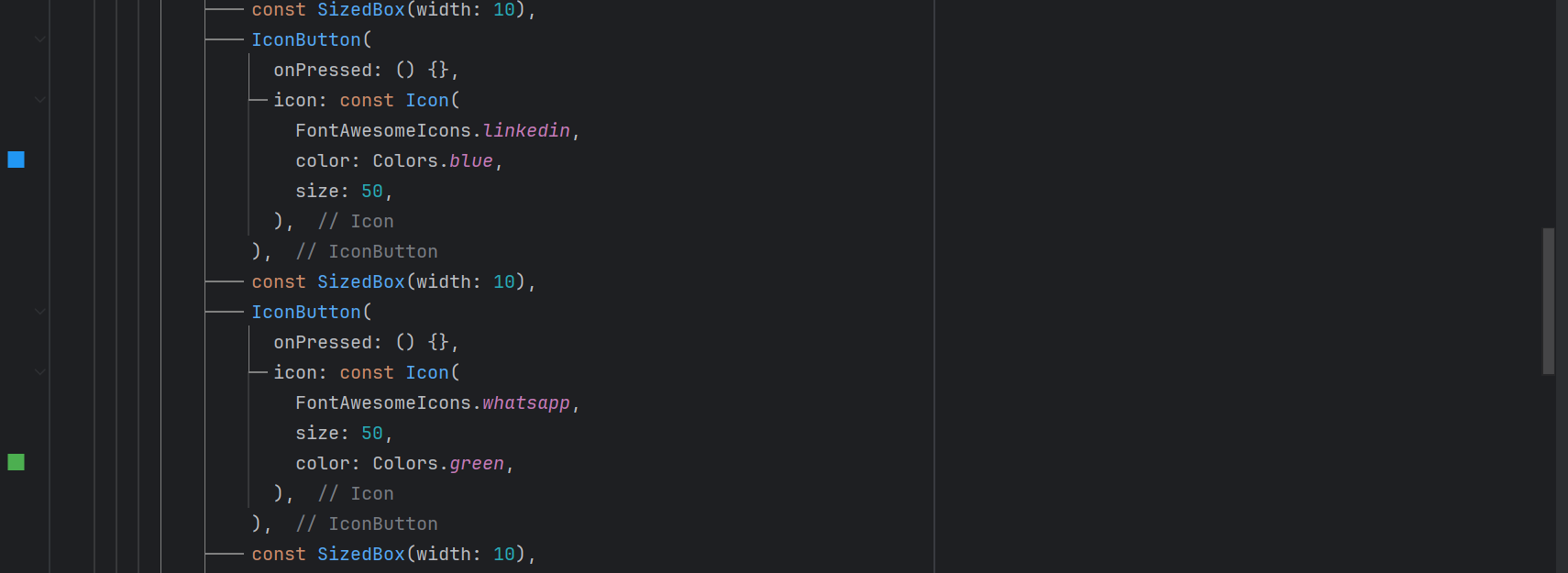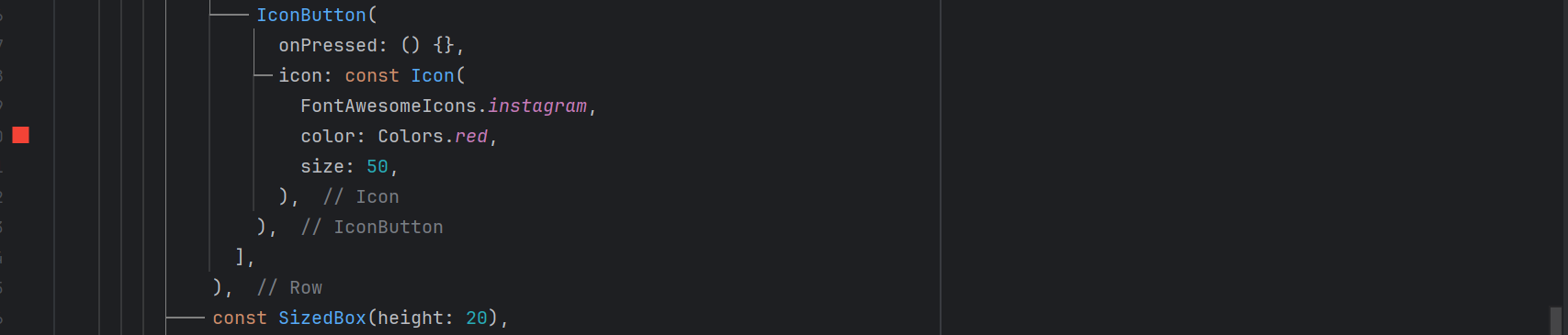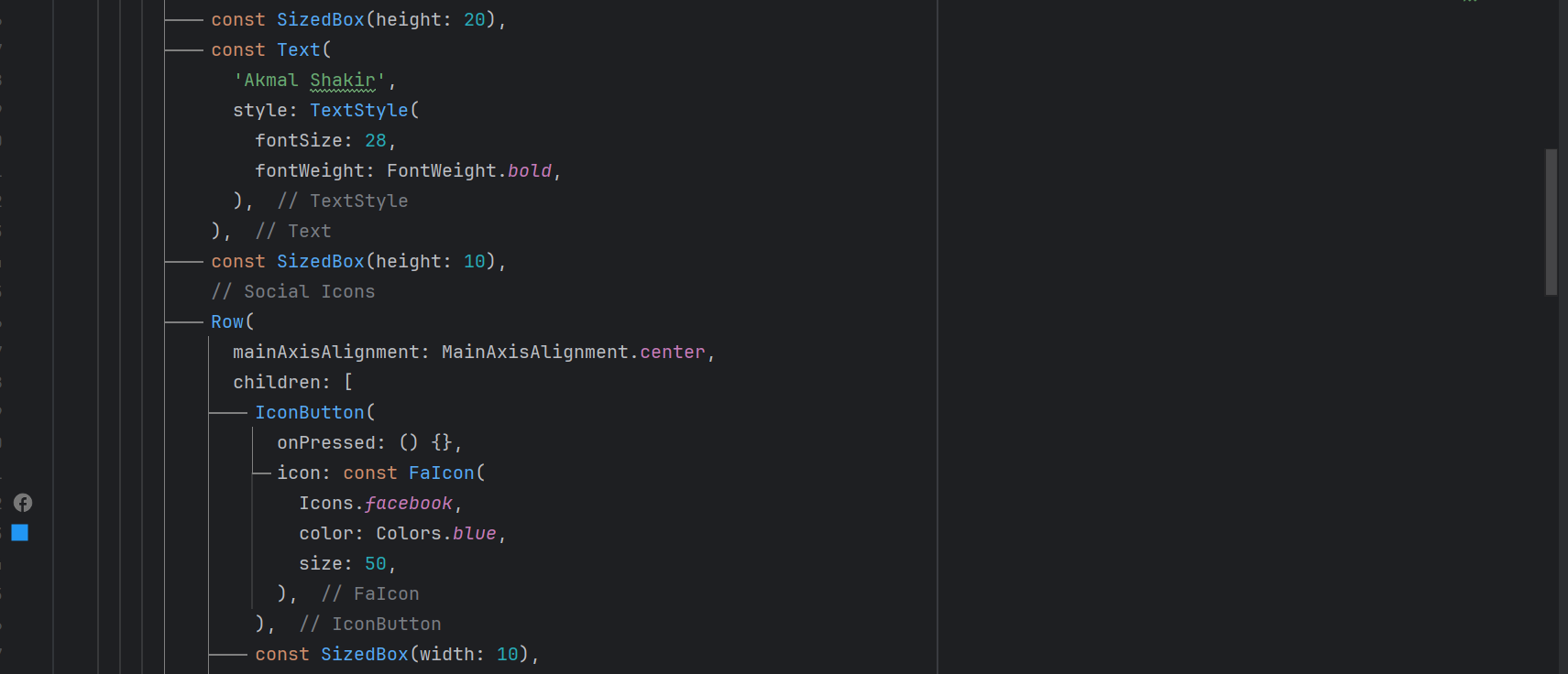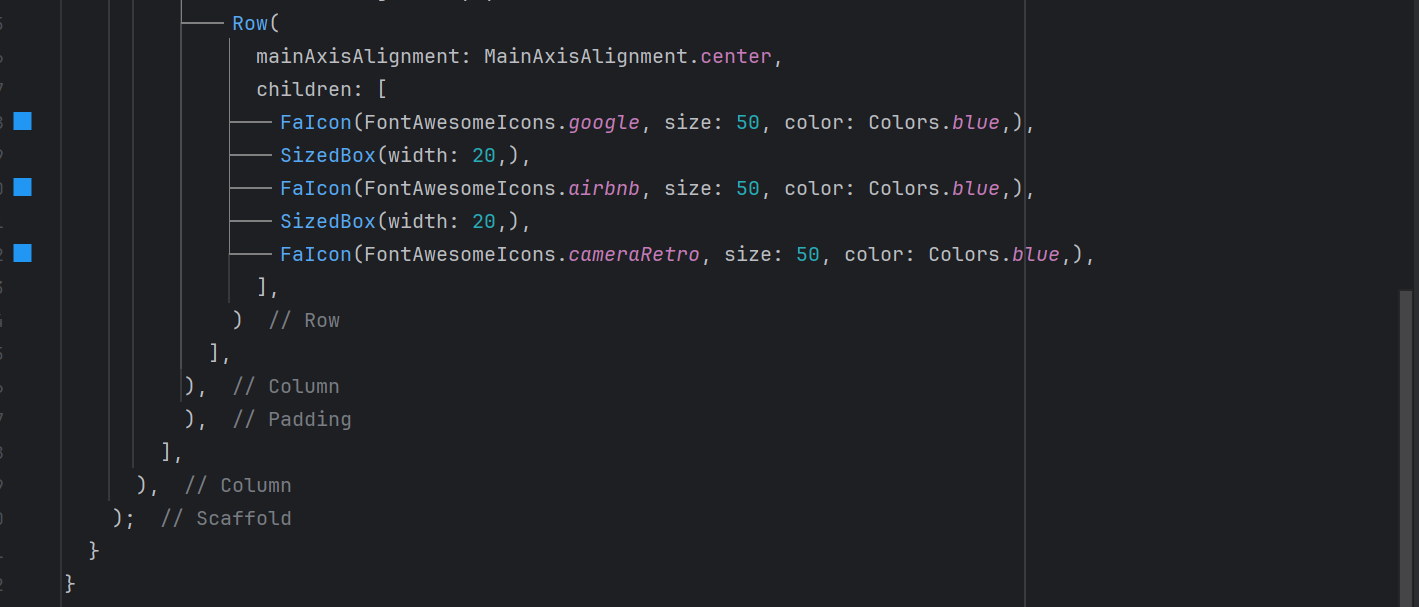 Iconson the screen. For the Icons I have usedFontAwesomeIconsflutter package. - I have given size of