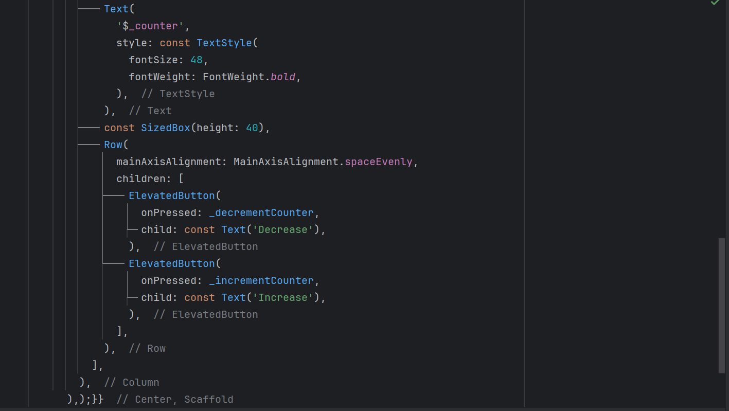 ElevatedButtonwidgets. In the increment button I have called increment method and in the decrement button I have called decrement method.