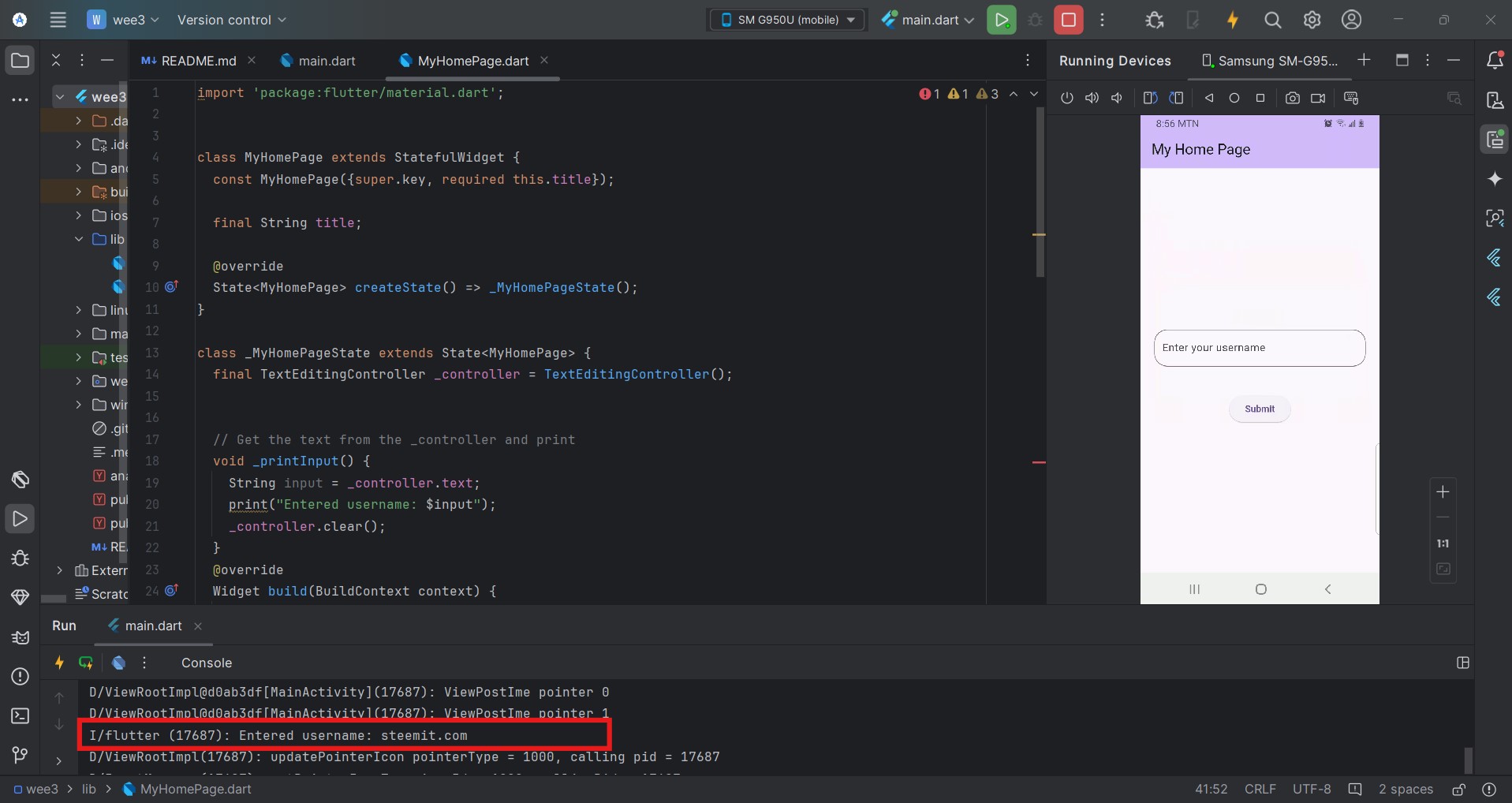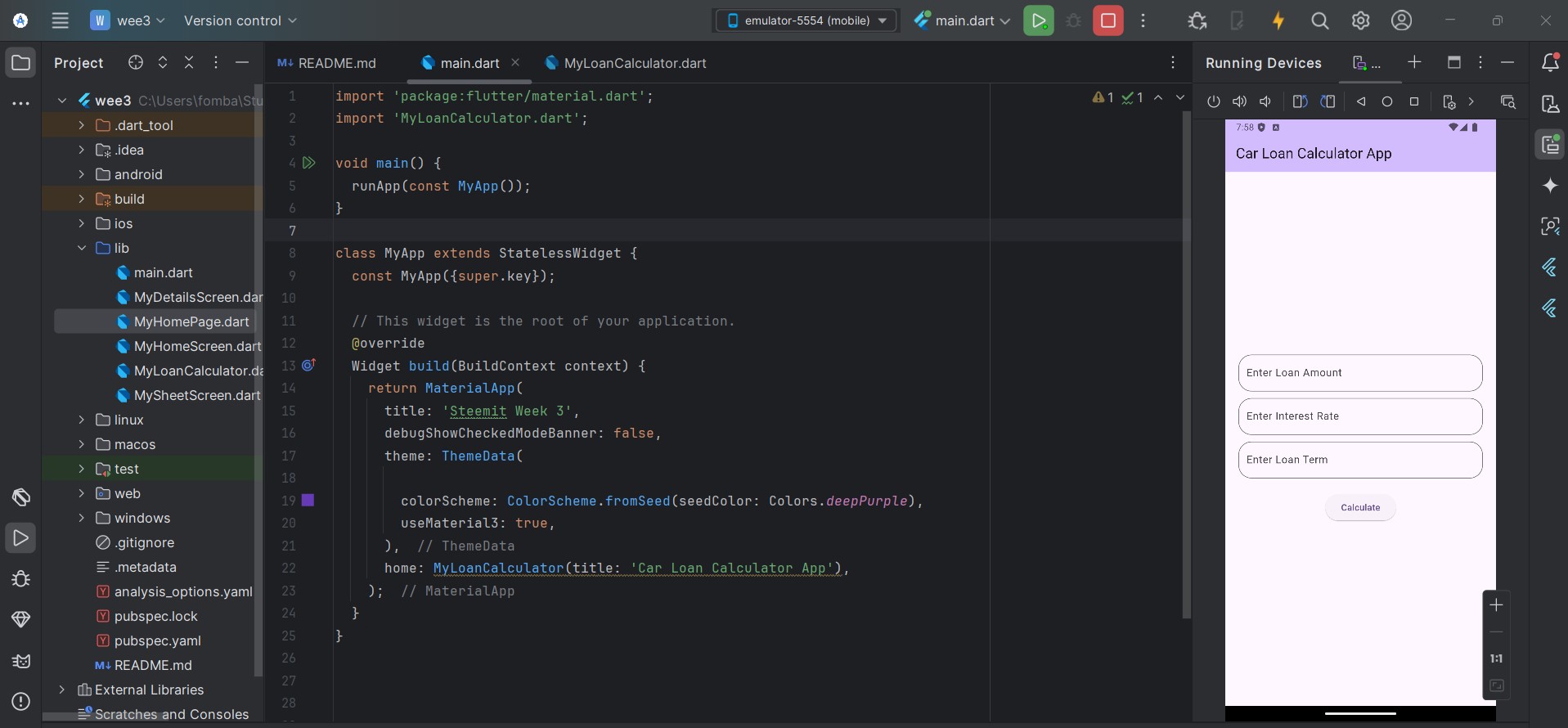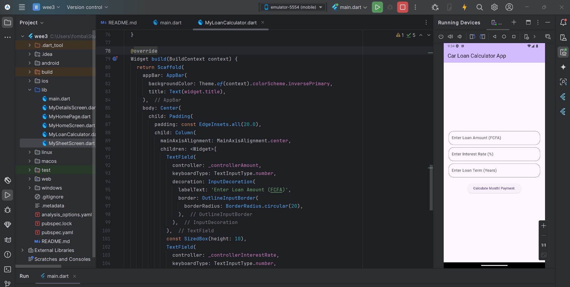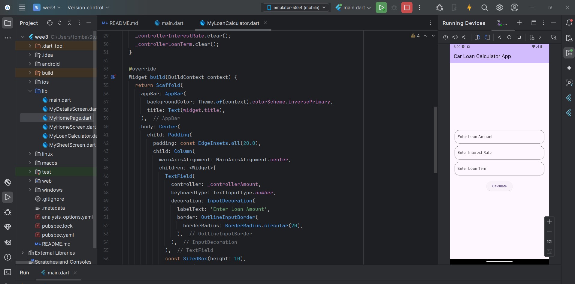 Let's start with creating the input field for the user to insert the load amount, interest rate, and load term. At the same time, we create the textEditingController to hold the input from the text field. At this point, we can print out input on the console.