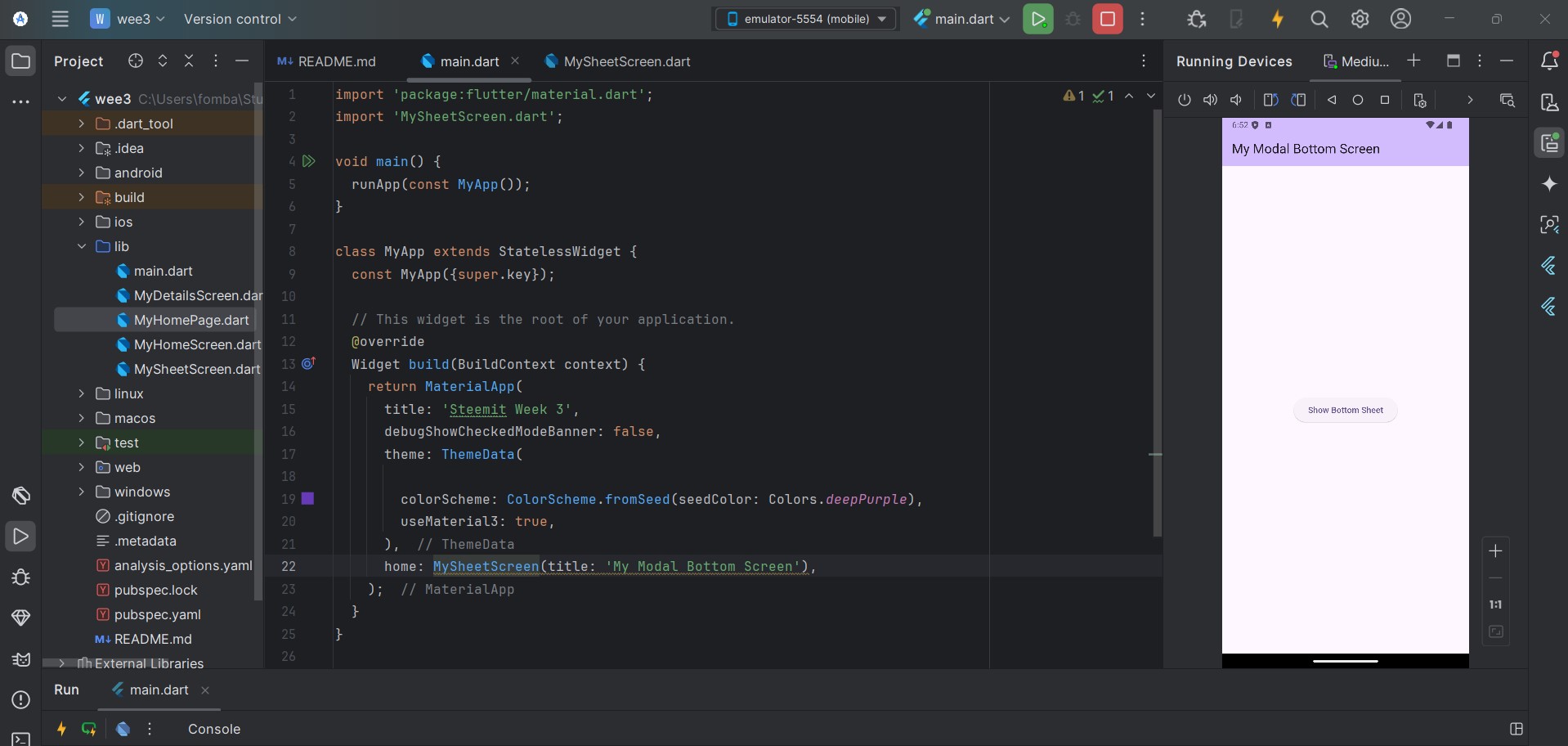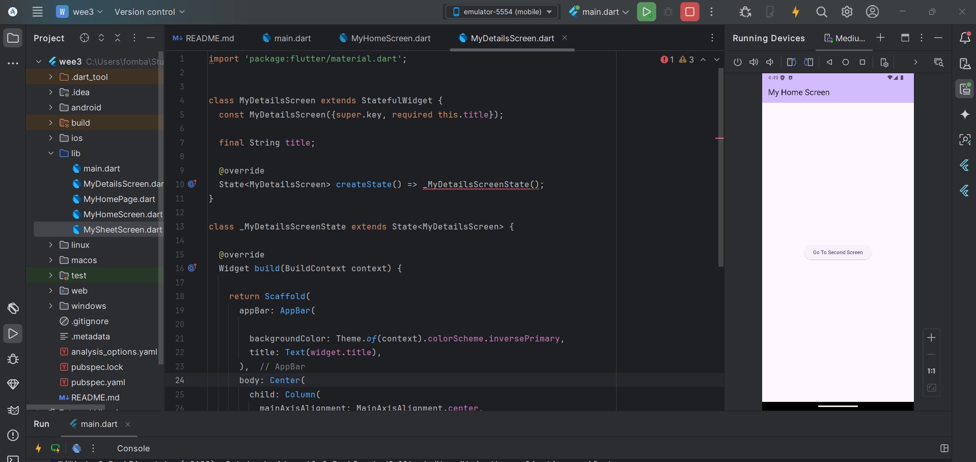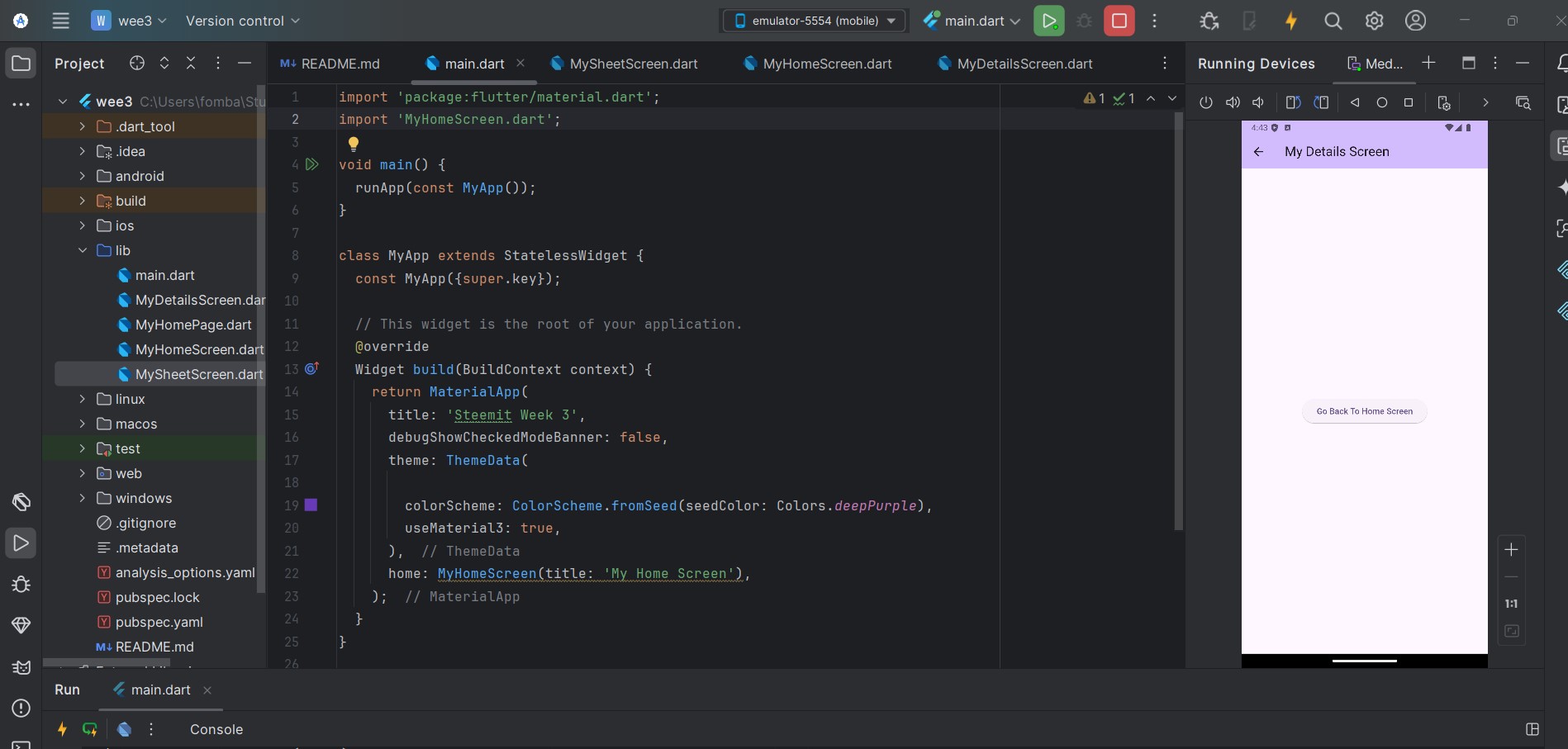 For each feature, I will always love to create a new file. That way I know I'm not tampering with any function that has to do something else. The file structure is not different, so I will create two new files MyHomeScreen and MyDetailsScreen.