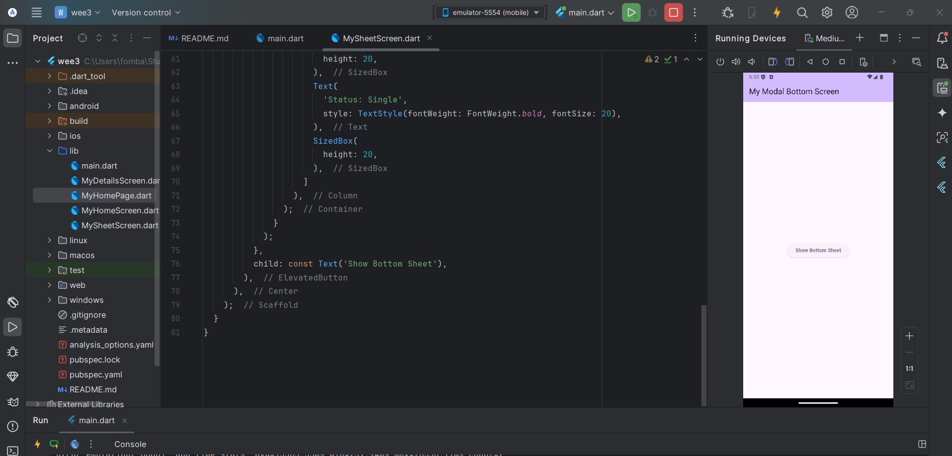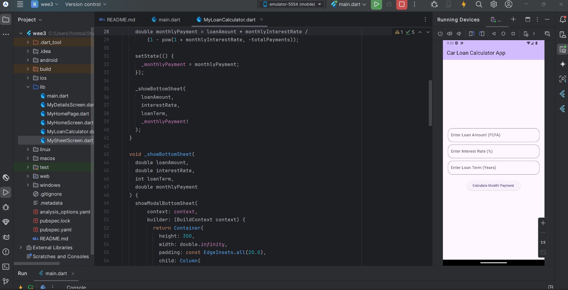 I move ahead to create the function _showBottomSheet, which will collect the different inputs declared in the variables. Note I created a variable monthlyPayments, which will perform the logic after the necessary inputs have been inputted.