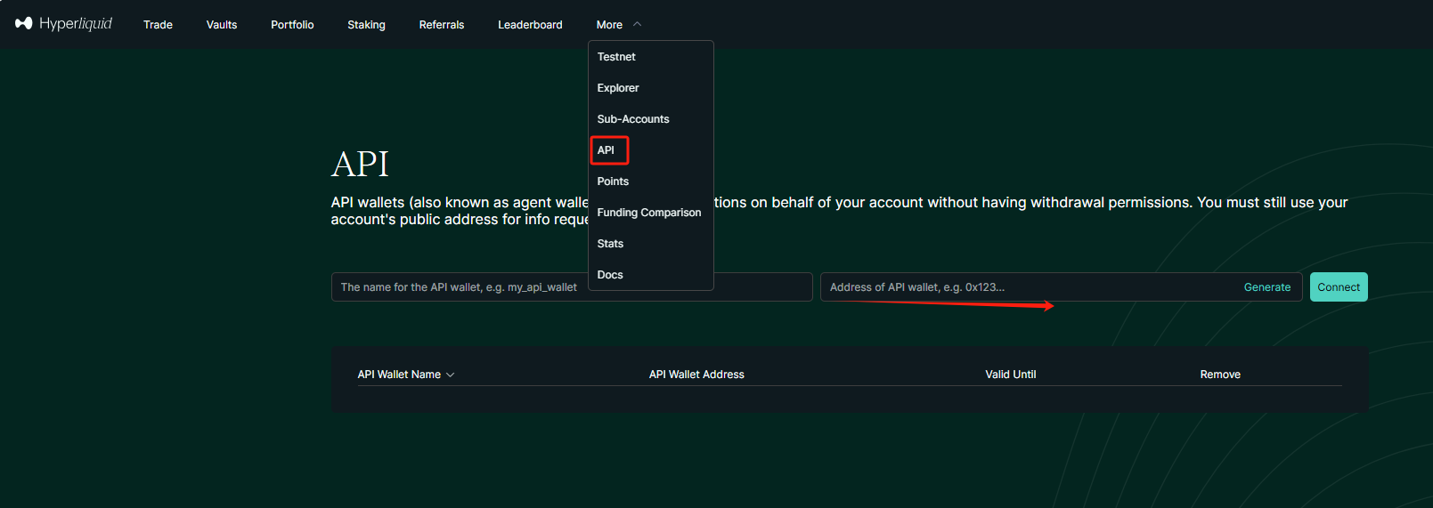 https://app.hyperliquid-testnet.xyz/API.