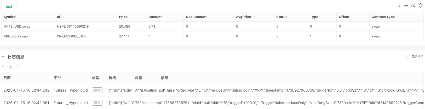 The mainnet configuration does not require the above switching operation. The API interfaces related to spot and futures products in the Hyperliquid DEX exchange are almost the same, with only slight differences in details. Next, we use the Hyperliquid Futures Exchange objects of the mainnet configuration information and the testnet configuration information for testing.