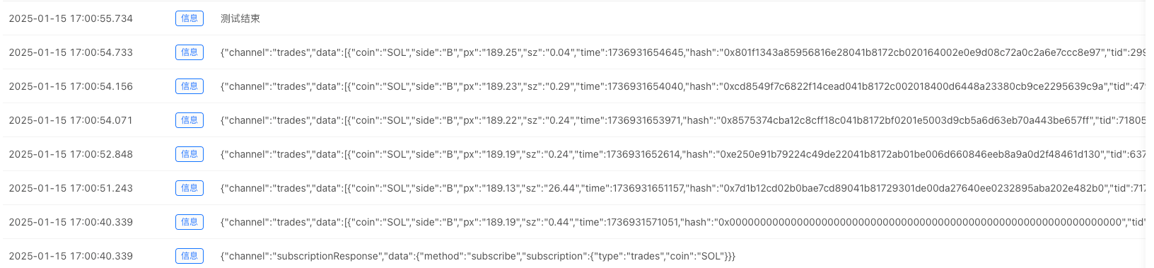 - Exchange information subscription practice (there is no Trades interface in the REST interface, which is supplemented by the Websocket interface)