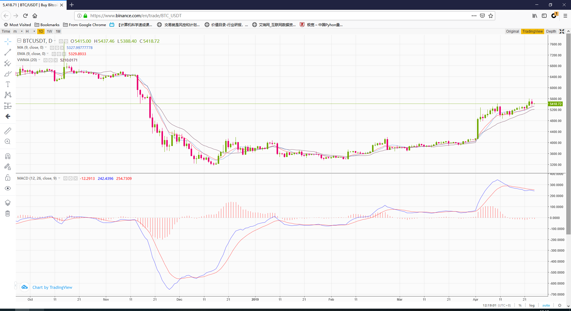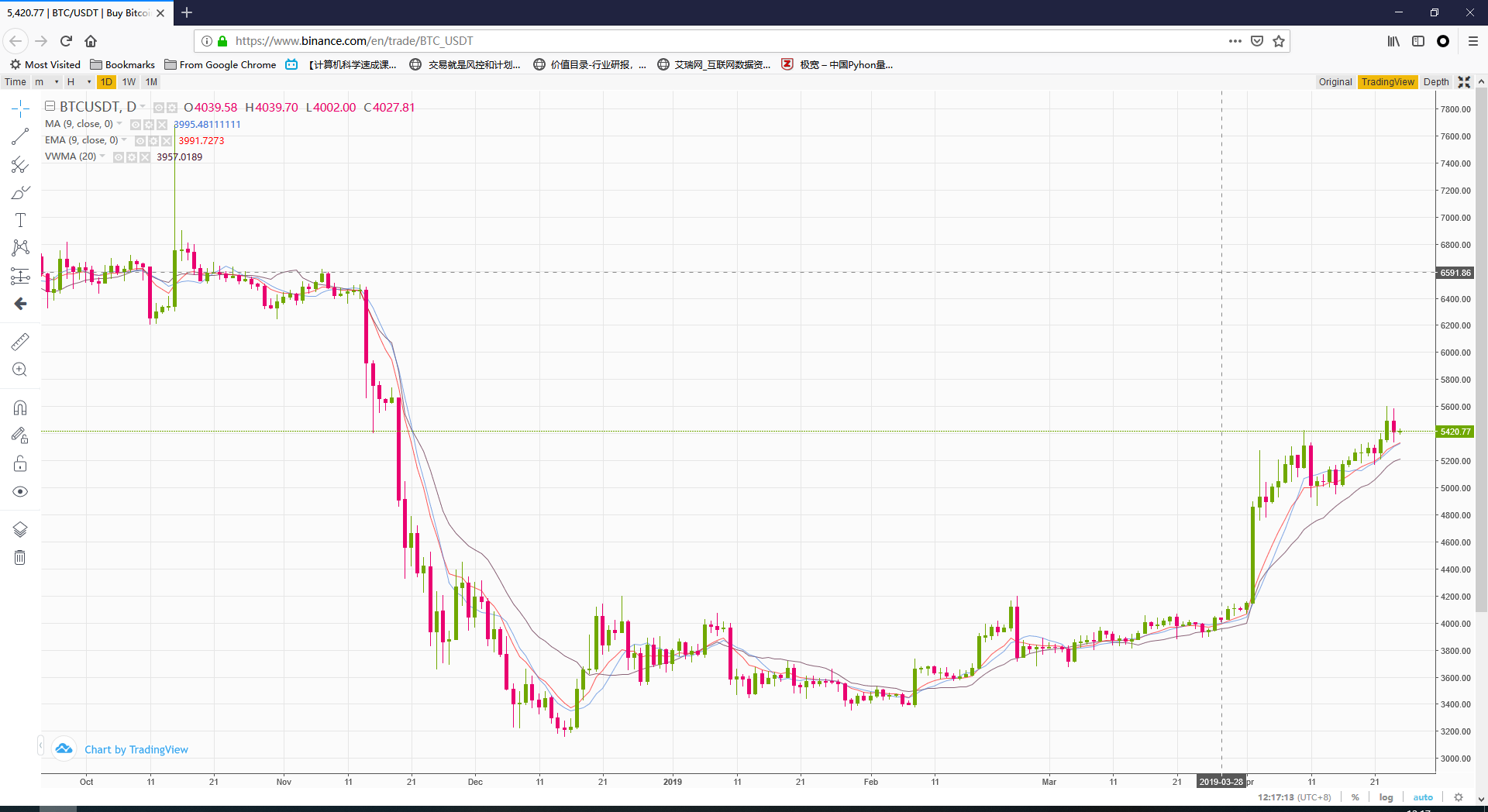 Finally, calculating the stage increment from these 2 K-line closing price.