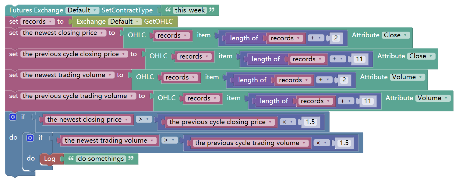After the prerequisite conditional assignment is completed, you need to write the trading logic. This is not as complicated as it seems. It is nothing more than the above strategy logic, expressed in the form of code blocks.