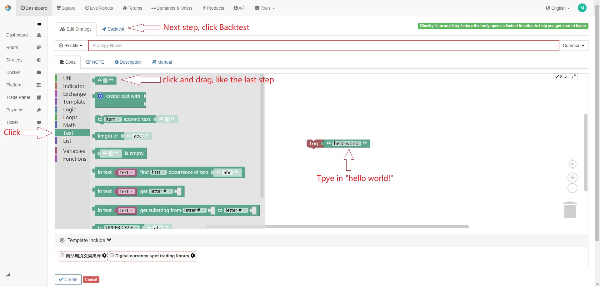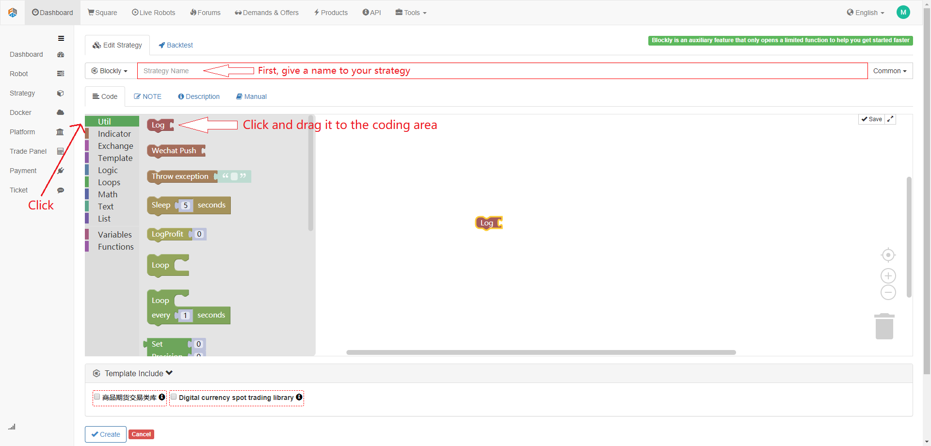 On the FMZ quant platform visual programming interface, use the API and understand what they mean.