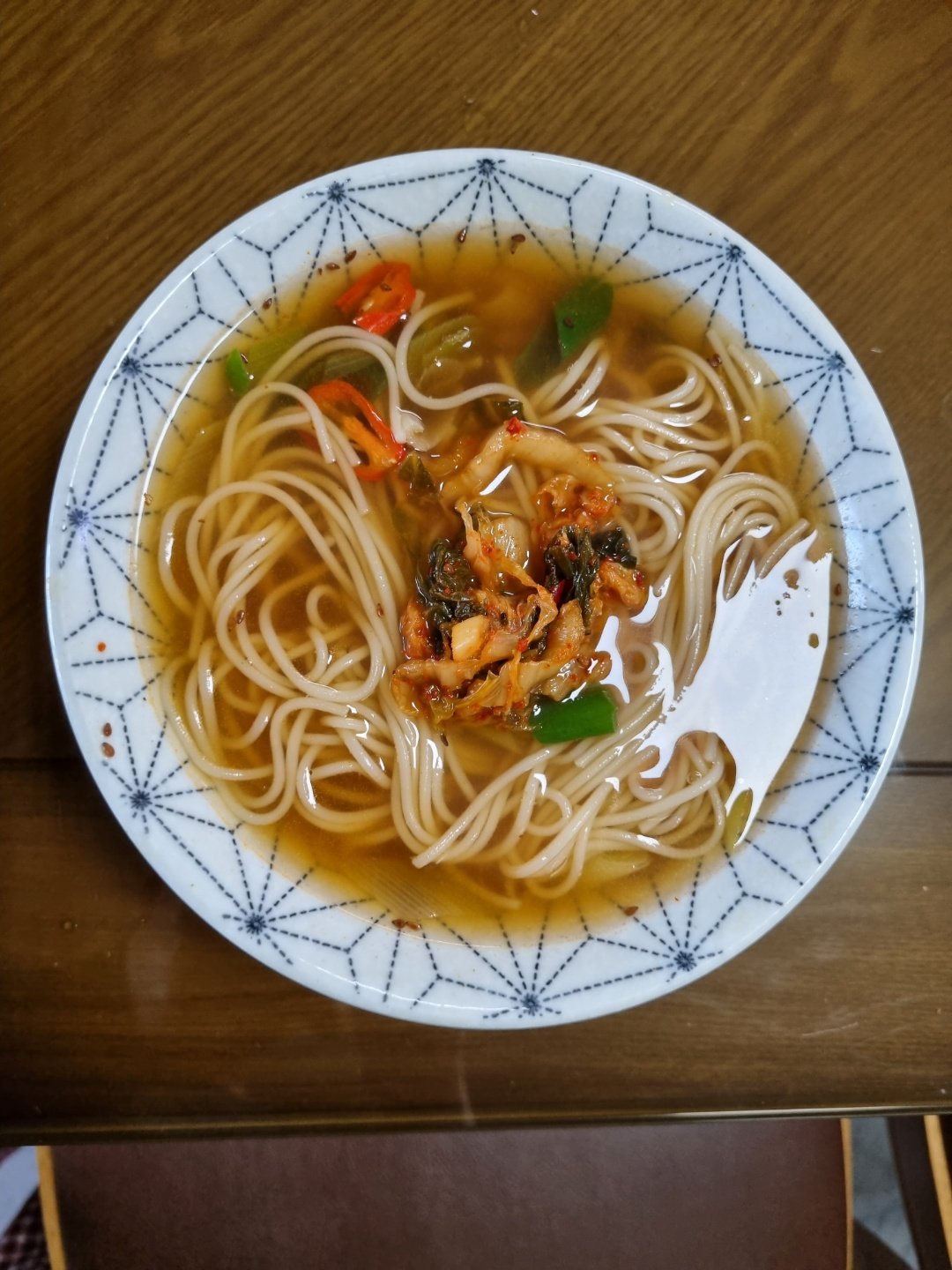 잔치국수attahussain (32)in #food • 4 years ago 집에서 잔치국수를 만들어 냠냠~~ 멸치육수에 소면과 중면을 섞어 면을 삶아 대파, 홍고추를 넣어주고 김치를 참기름과 양념하여 올려 먹는다!!! 2그릇을 맛있게 후르륵~~
