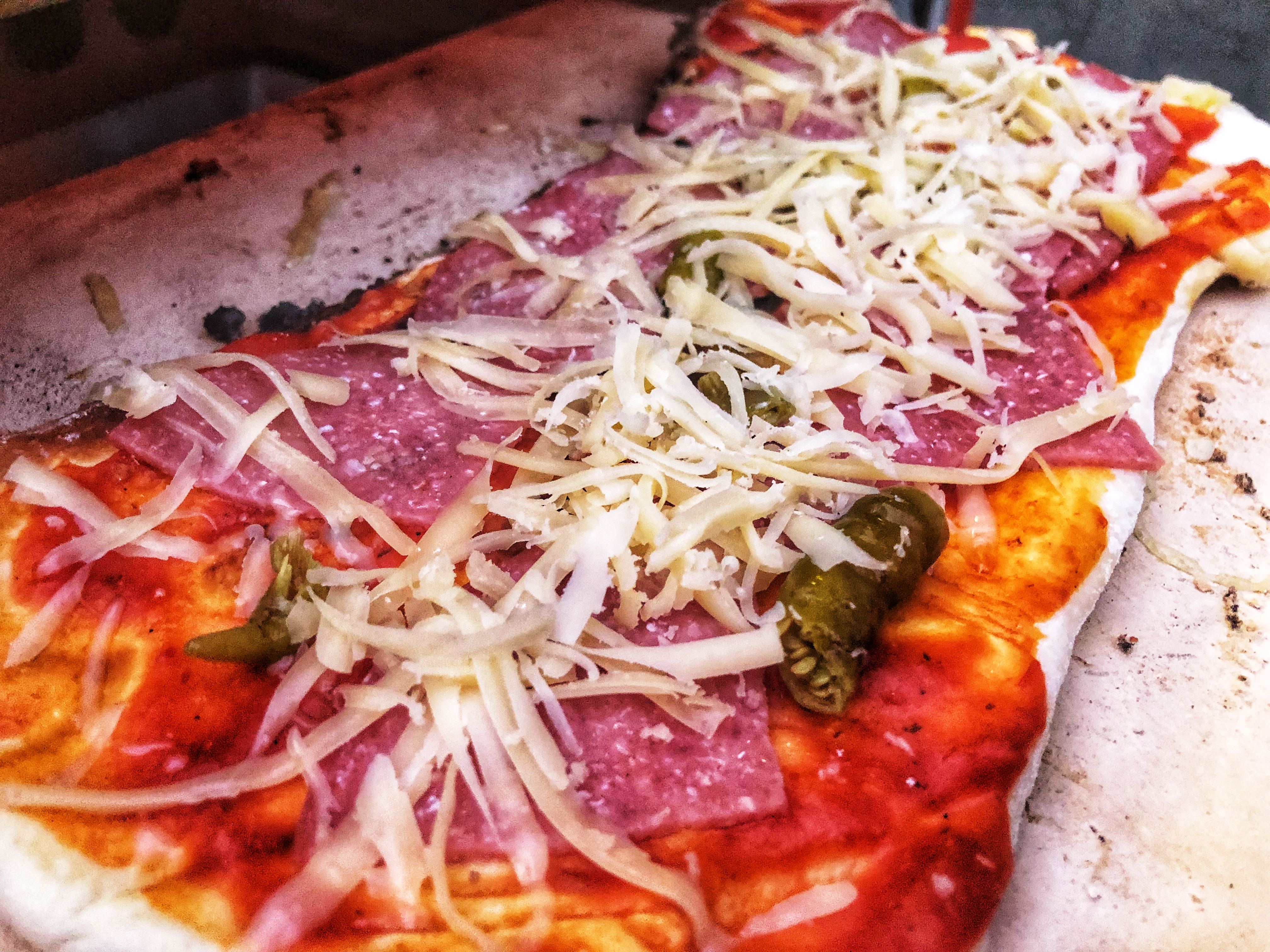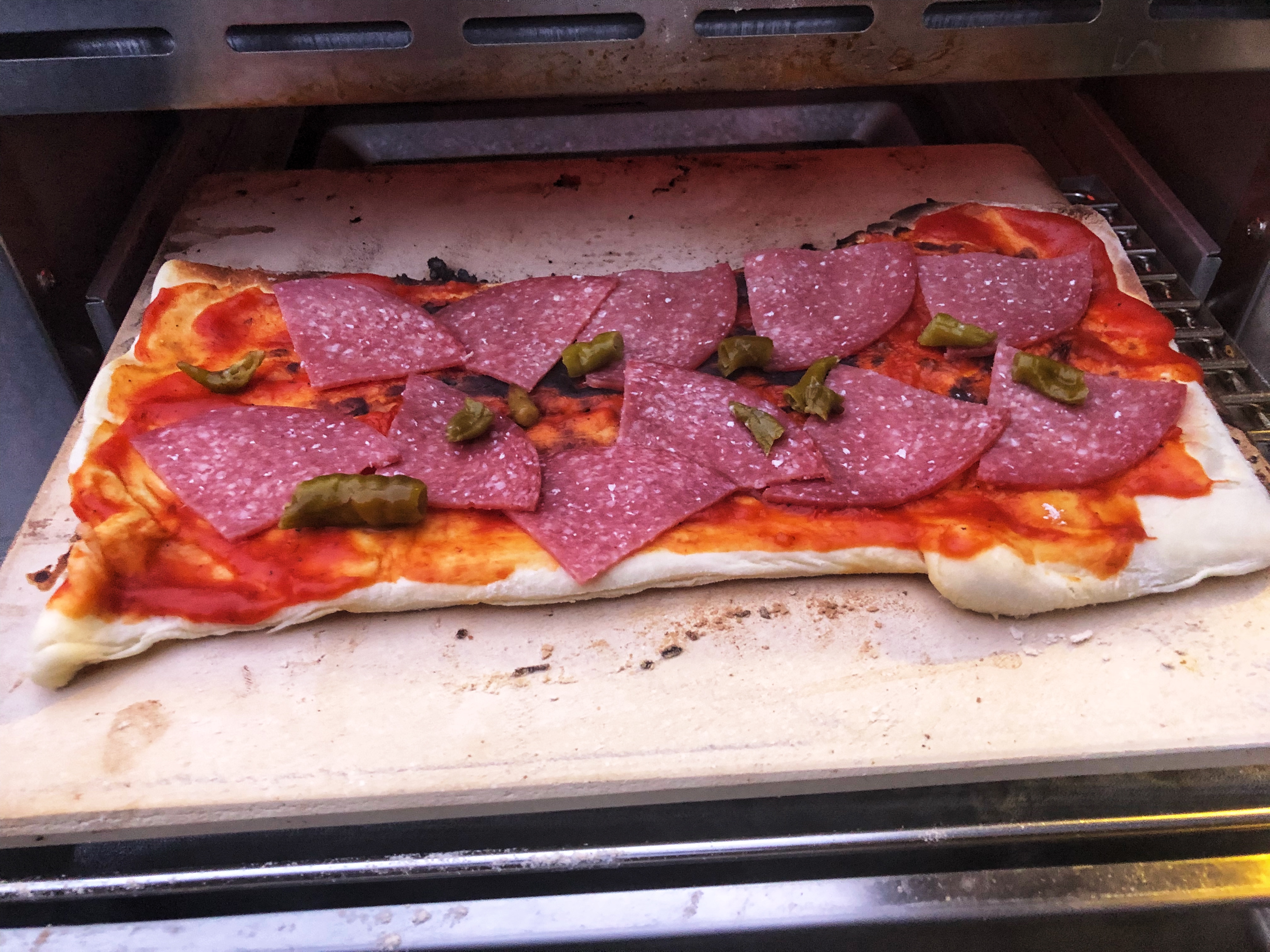 As you can see, I prepare the pizza in a classic way with salami and 🔥hot peppers :-)