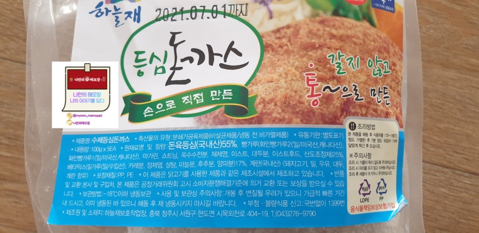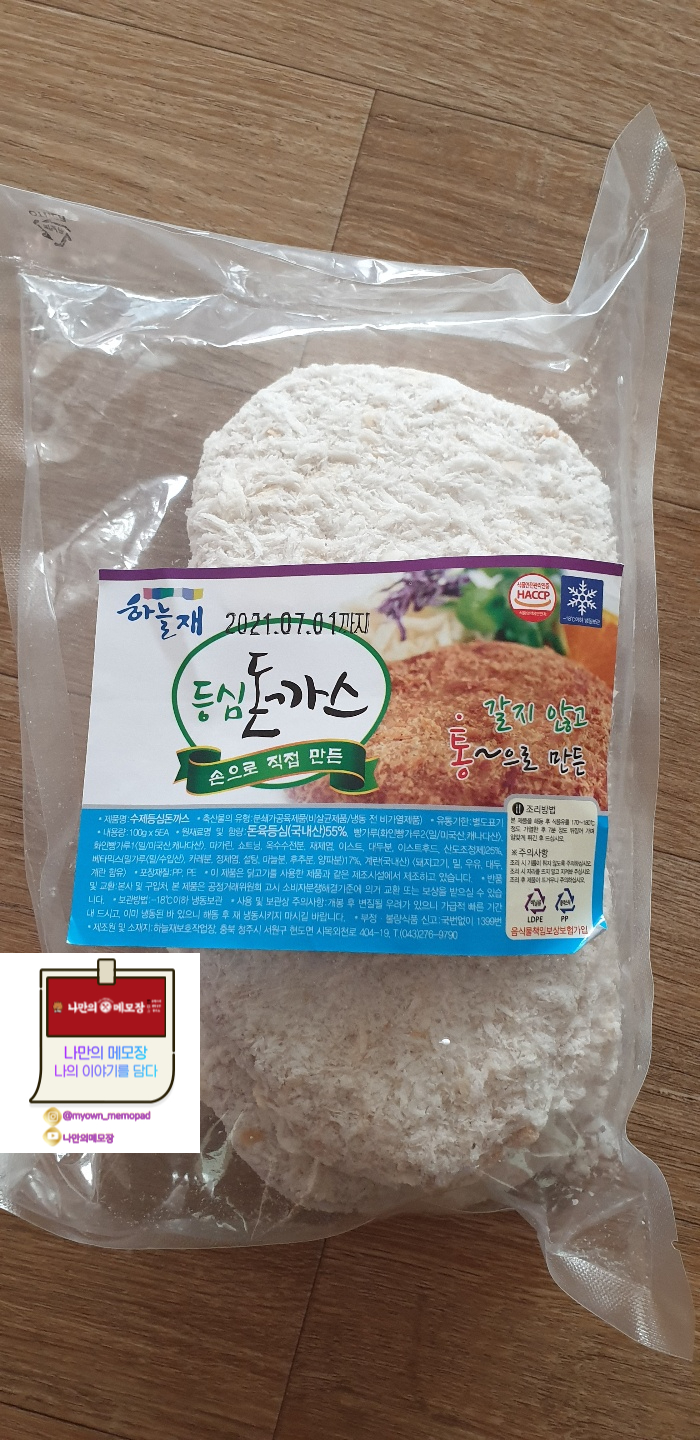등심돈까스 하나당 100g이며 청주 쪽에서 제조가 되었네요.