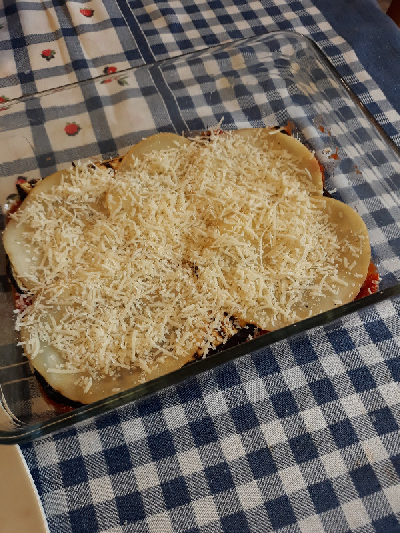 I don’t use salt because the tomato sauce and the two types of cheese are already salted enough for the whole dish.