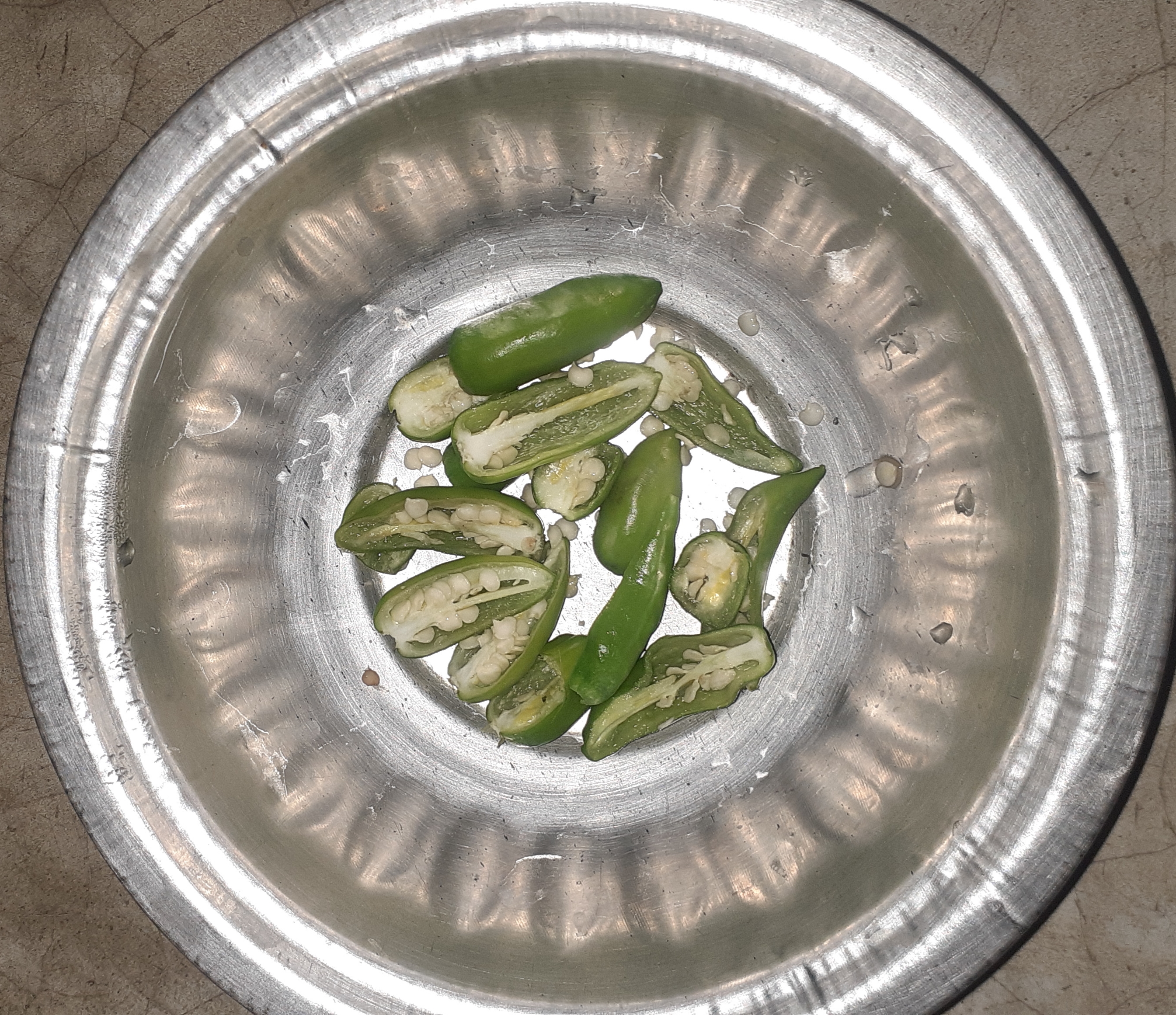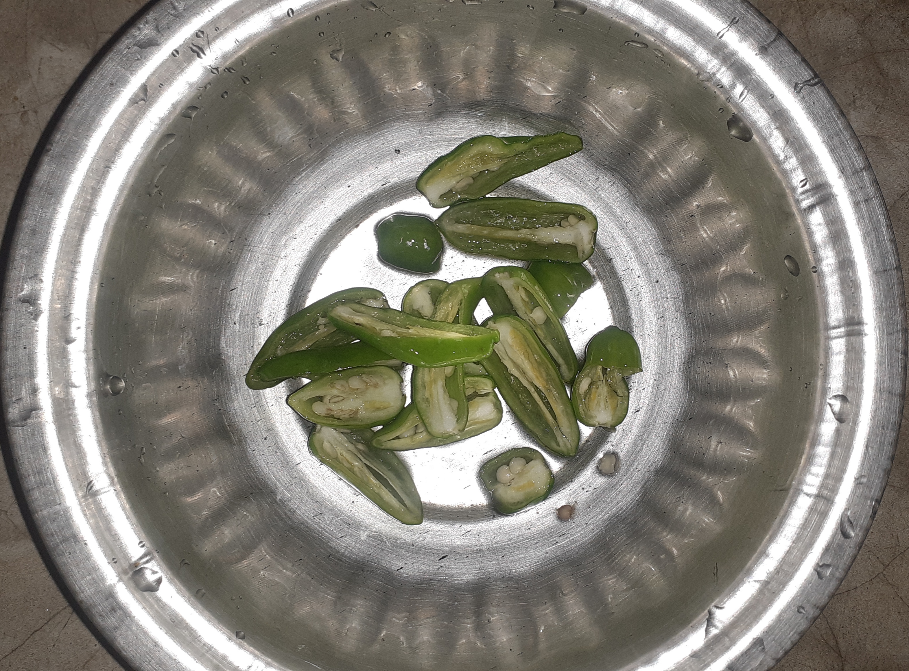 লঙ্কাগুলো কেটে জল দিয়ে ধুয়ে নিয়েছি।