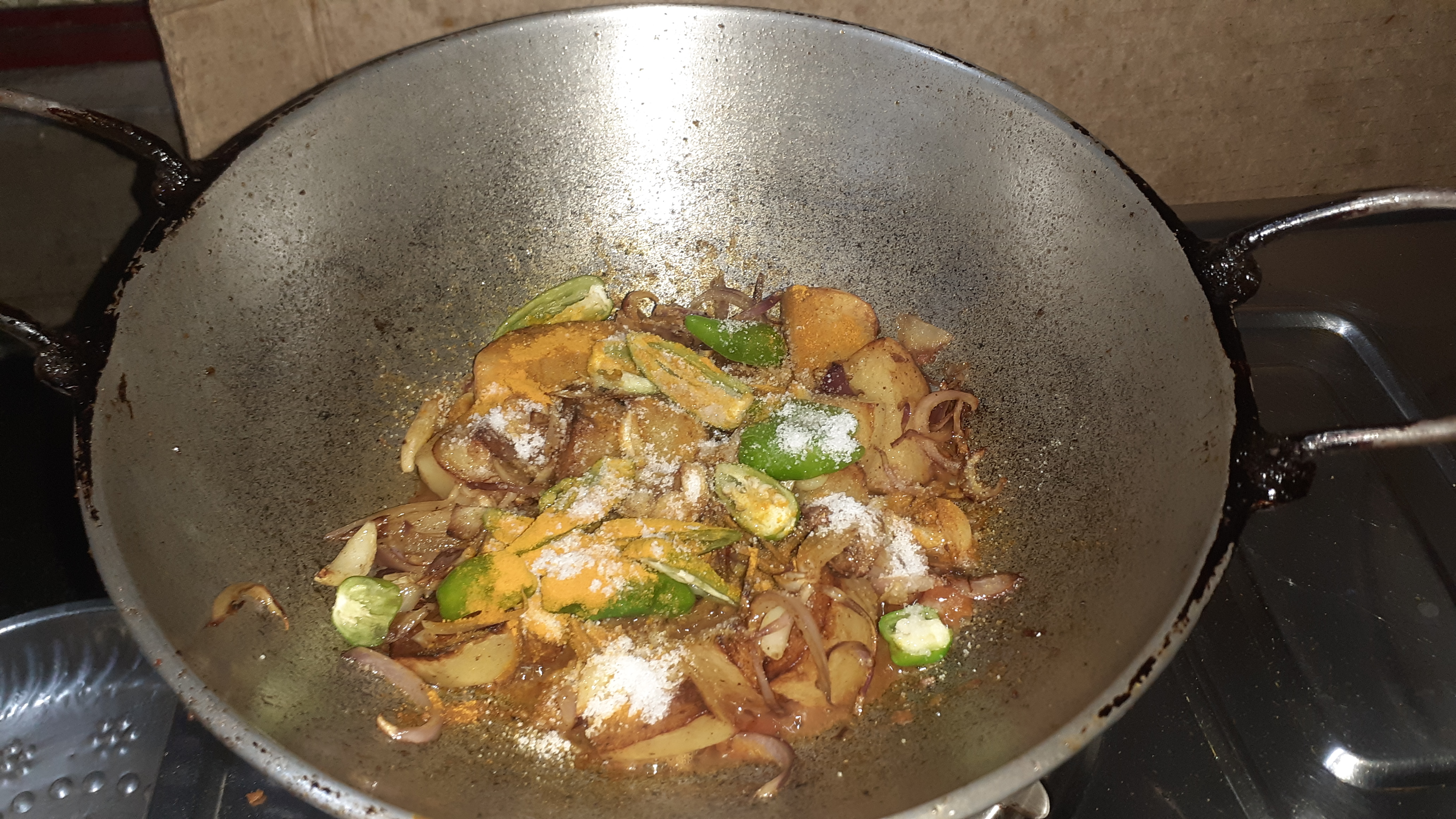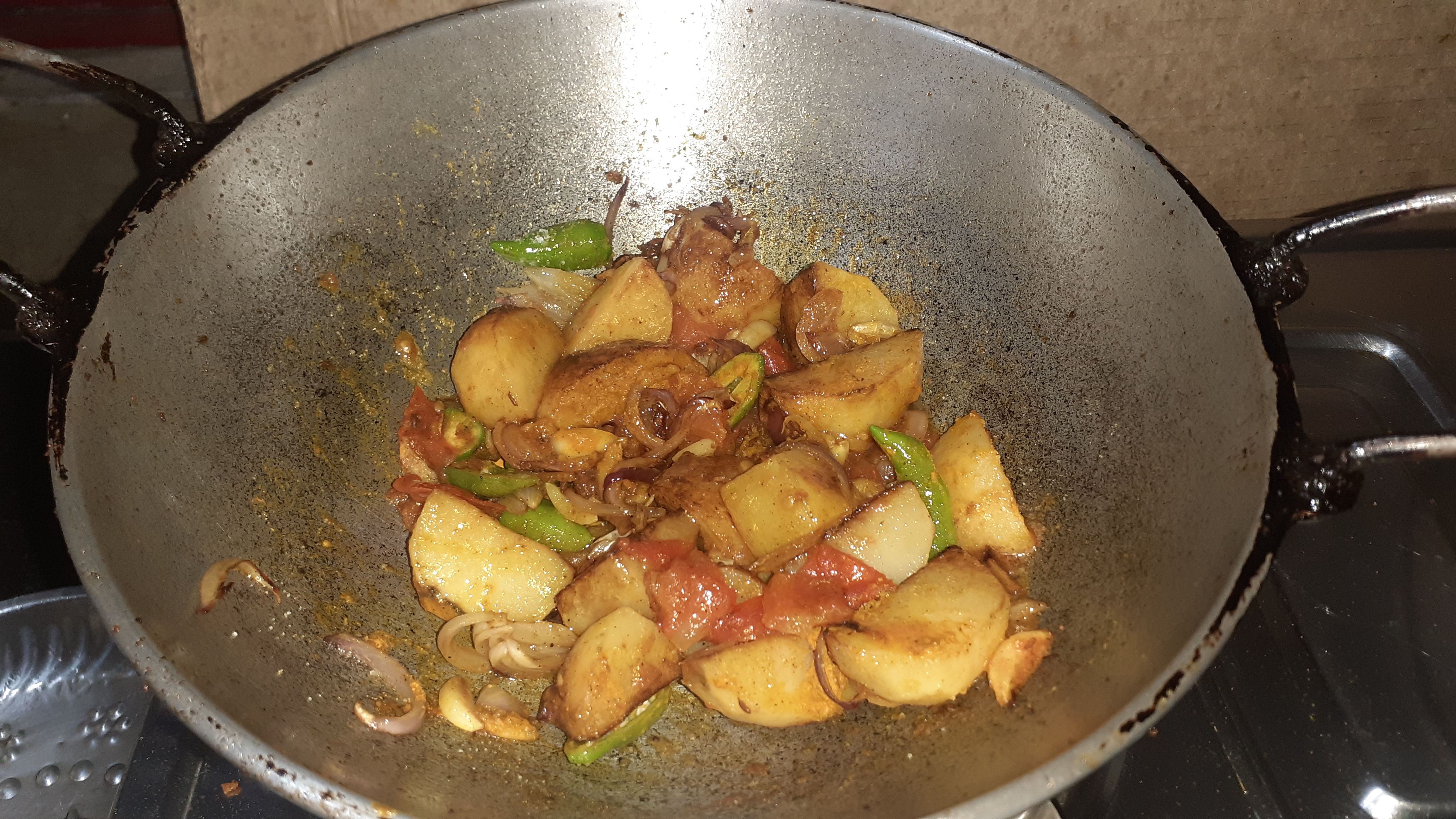 আলুগুলো লাল মতো করে ভেজে নিয়েছি।