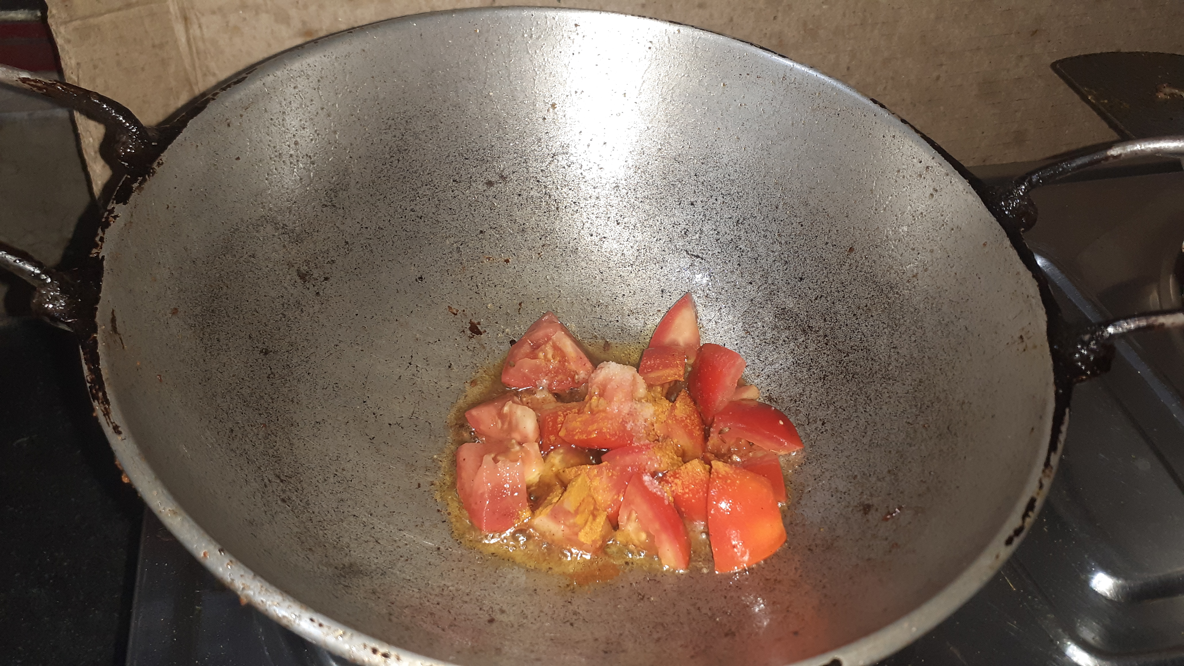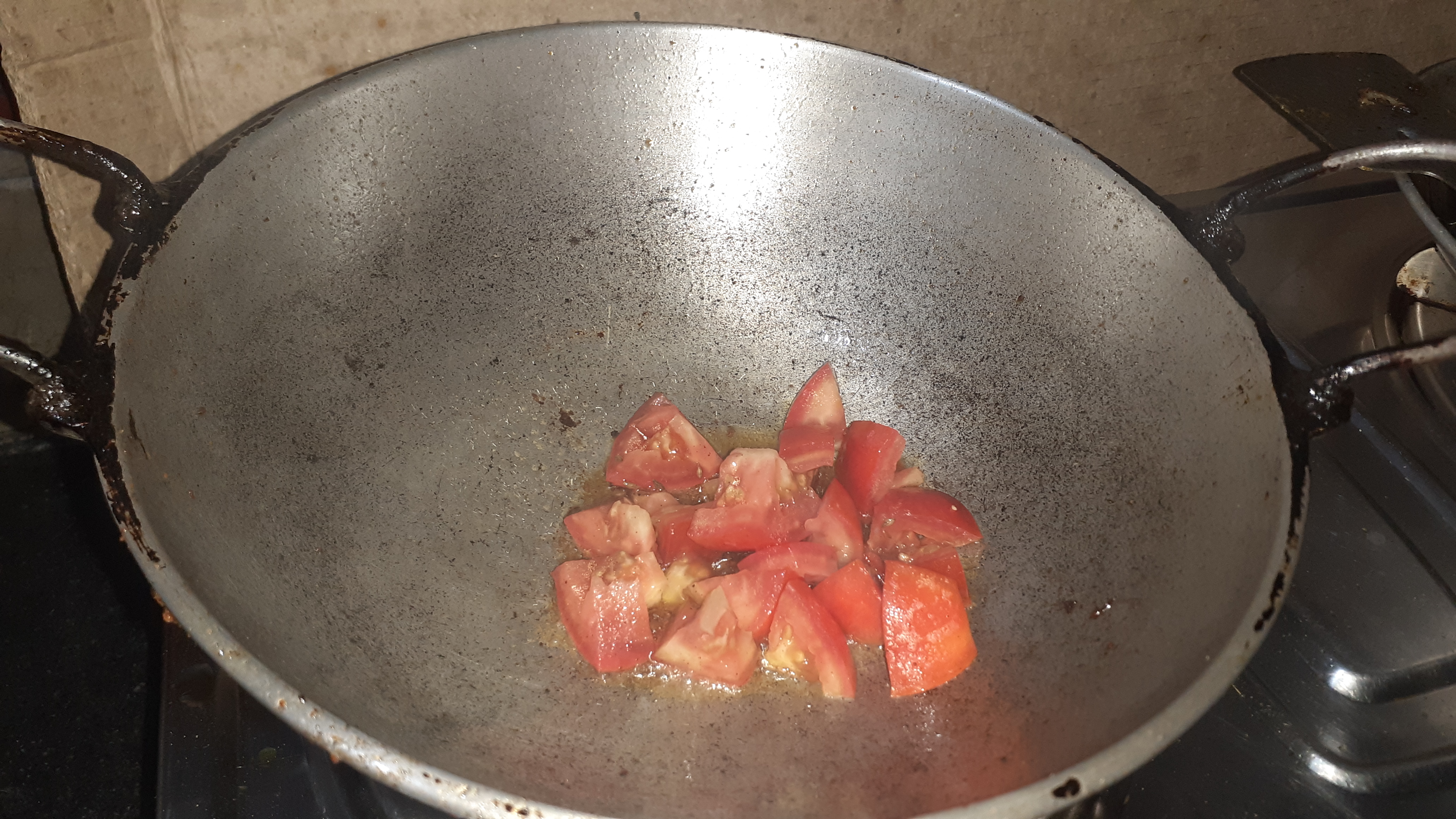 পাঁচফোড়ন হালকা করে ভেজে নিয়েছি। তাতে টমেটোও ভেজে নিয়েছি।