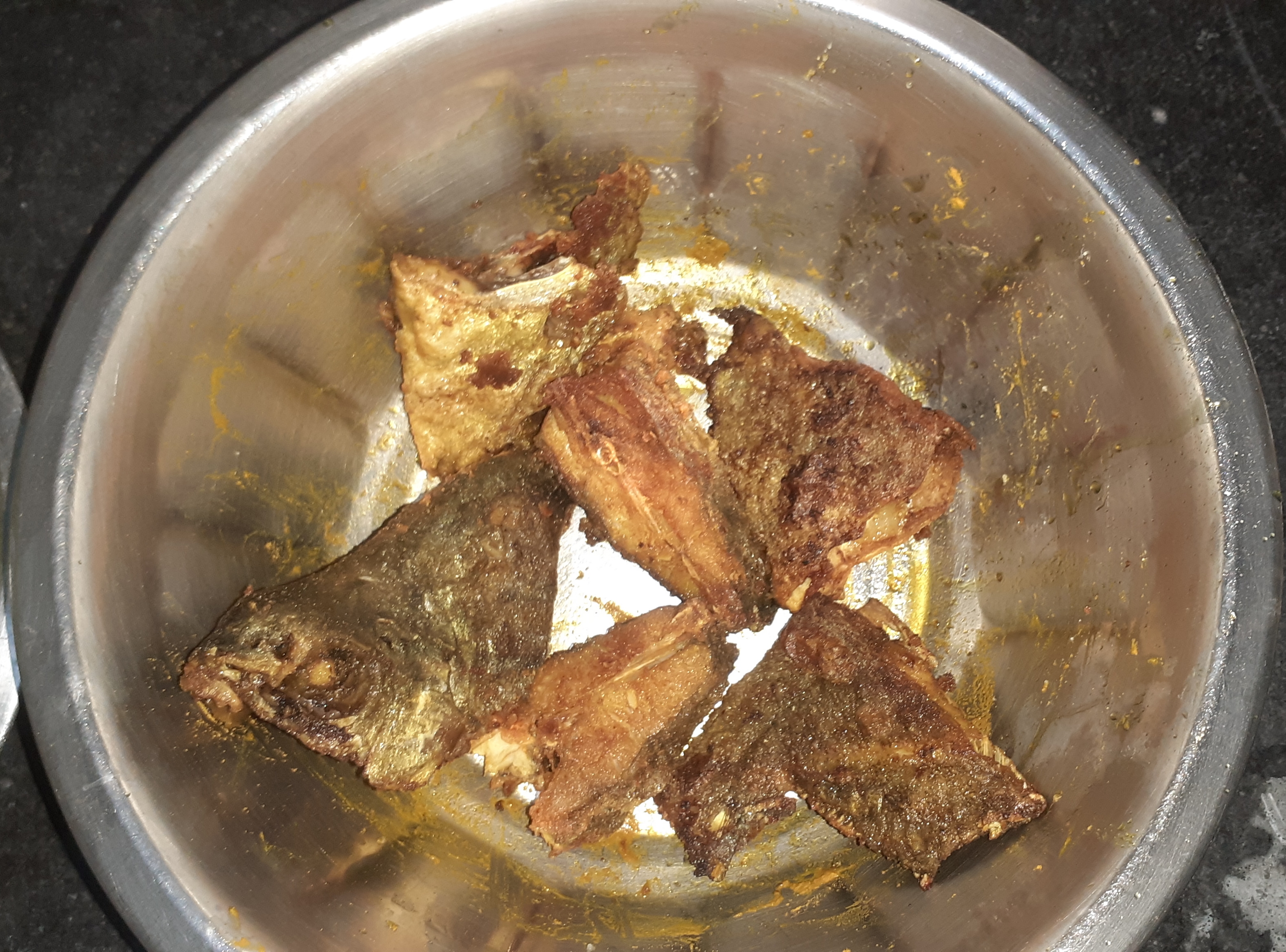 মাছগুলো ভালো করে ভেজে পাত্রে তুলে নিয়েছি।