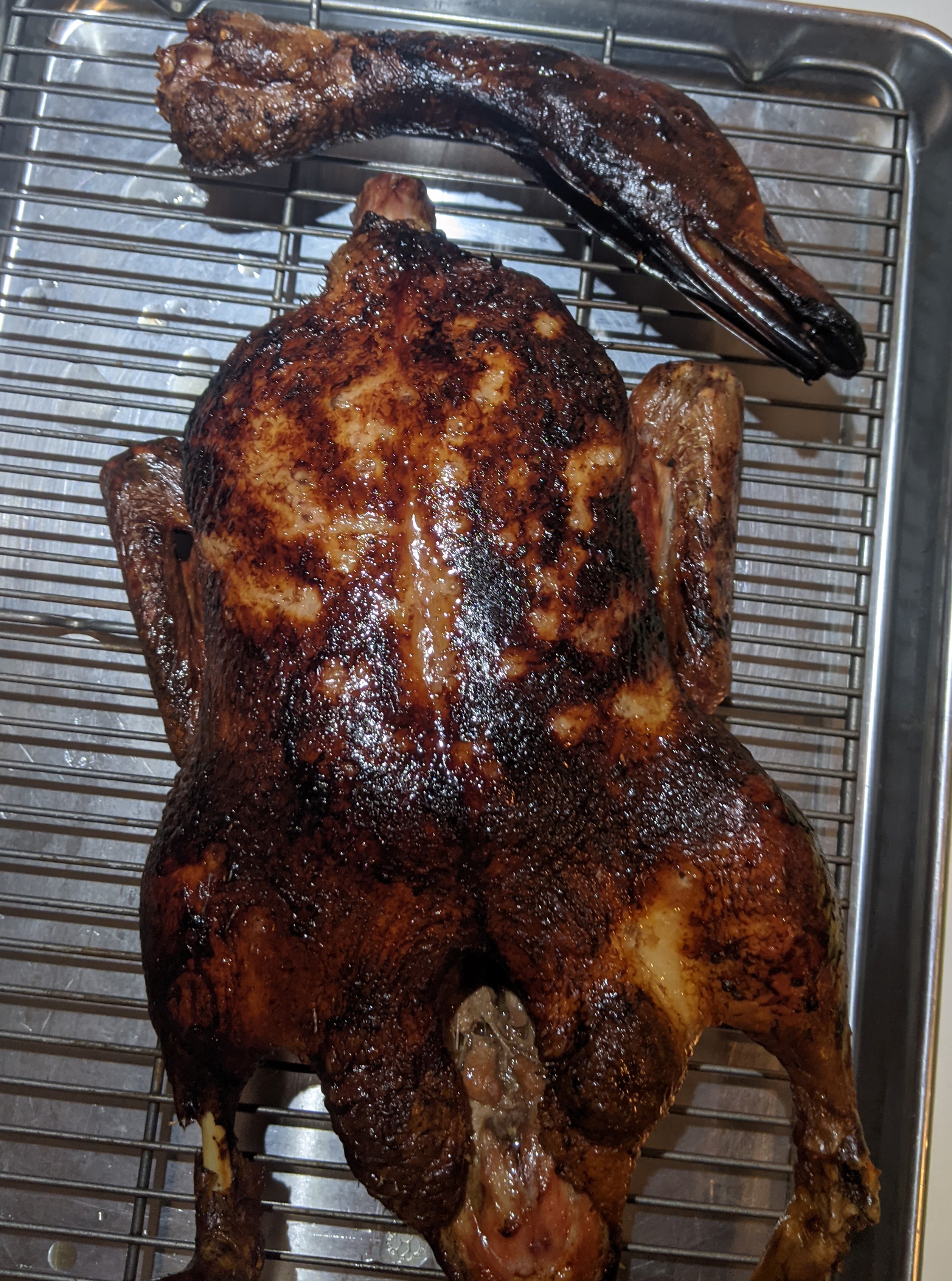 One thought I had for next time was to "velvet" the skin using baking soda to help it crisp up better, but I would still want to baste it so timing would be key there for everything to work out right.