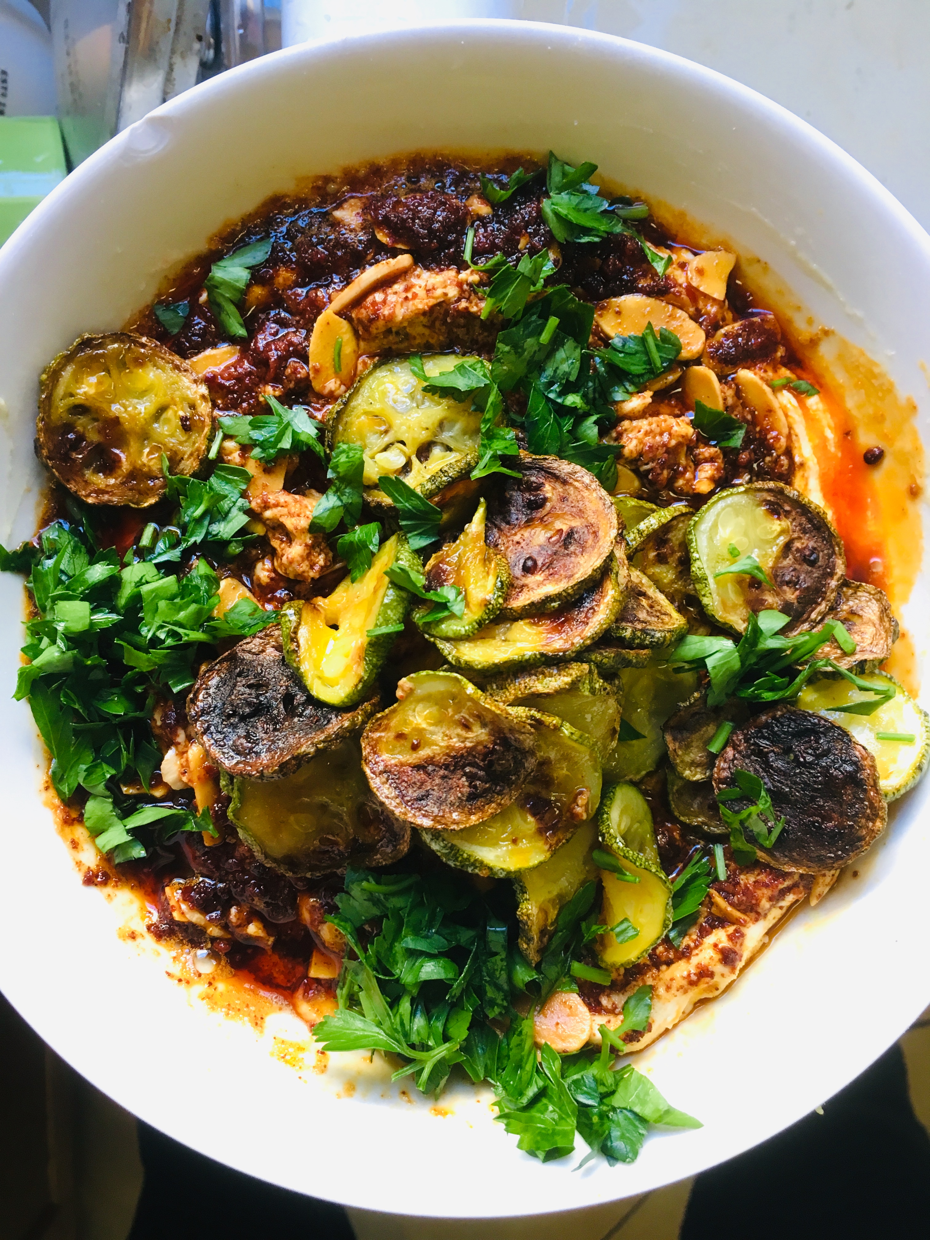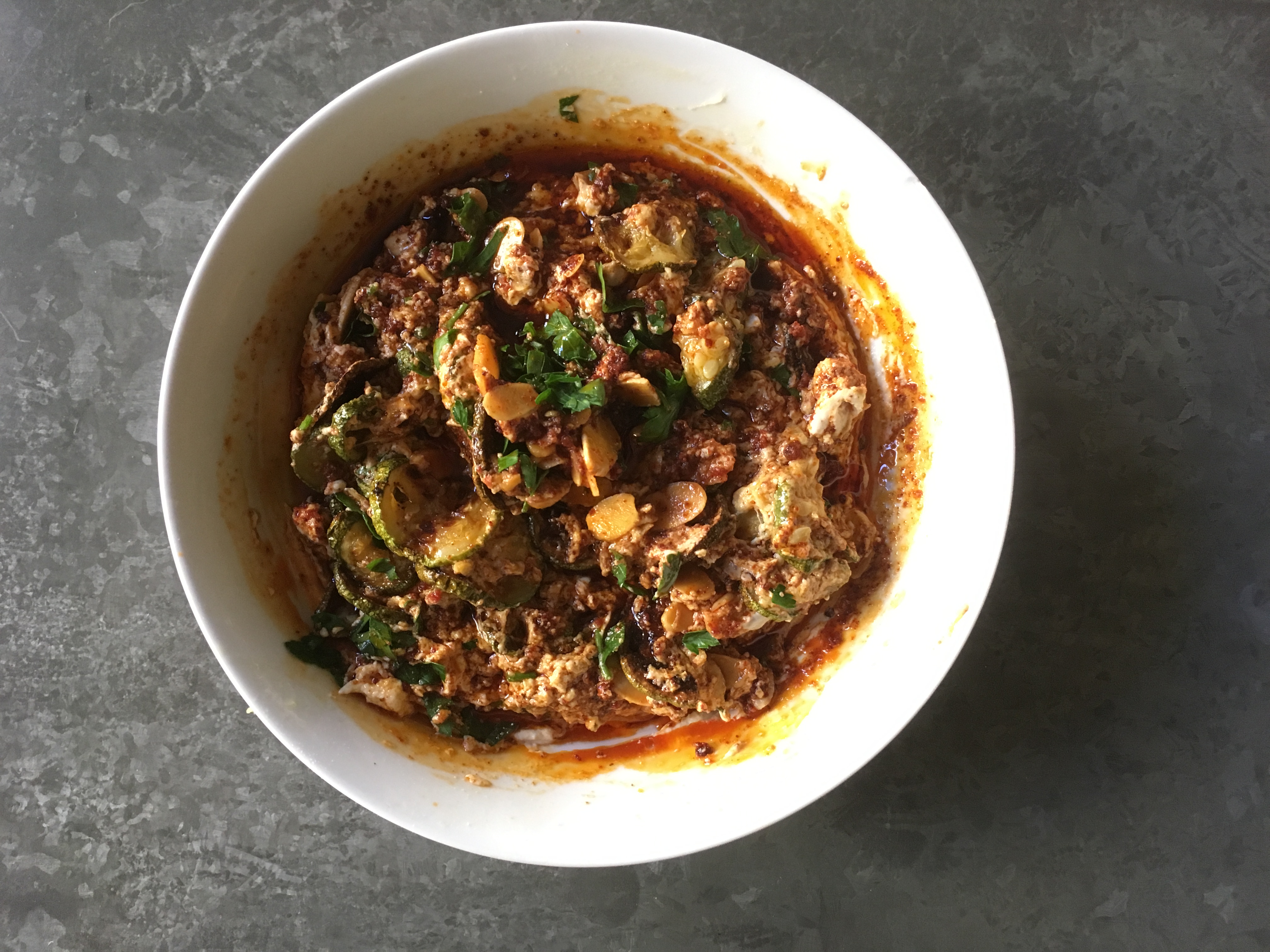 The dish is syrian from the Aleppo region, where my family’s from. The base is similar to a previous recipe I posted, and is a common base for many dishes of this variety. It uses yogurt, tahini and various seasonings depending on the dish. Since yogurt is high in carbs, I use labne instead. Here are some pictures from today’s kitchen