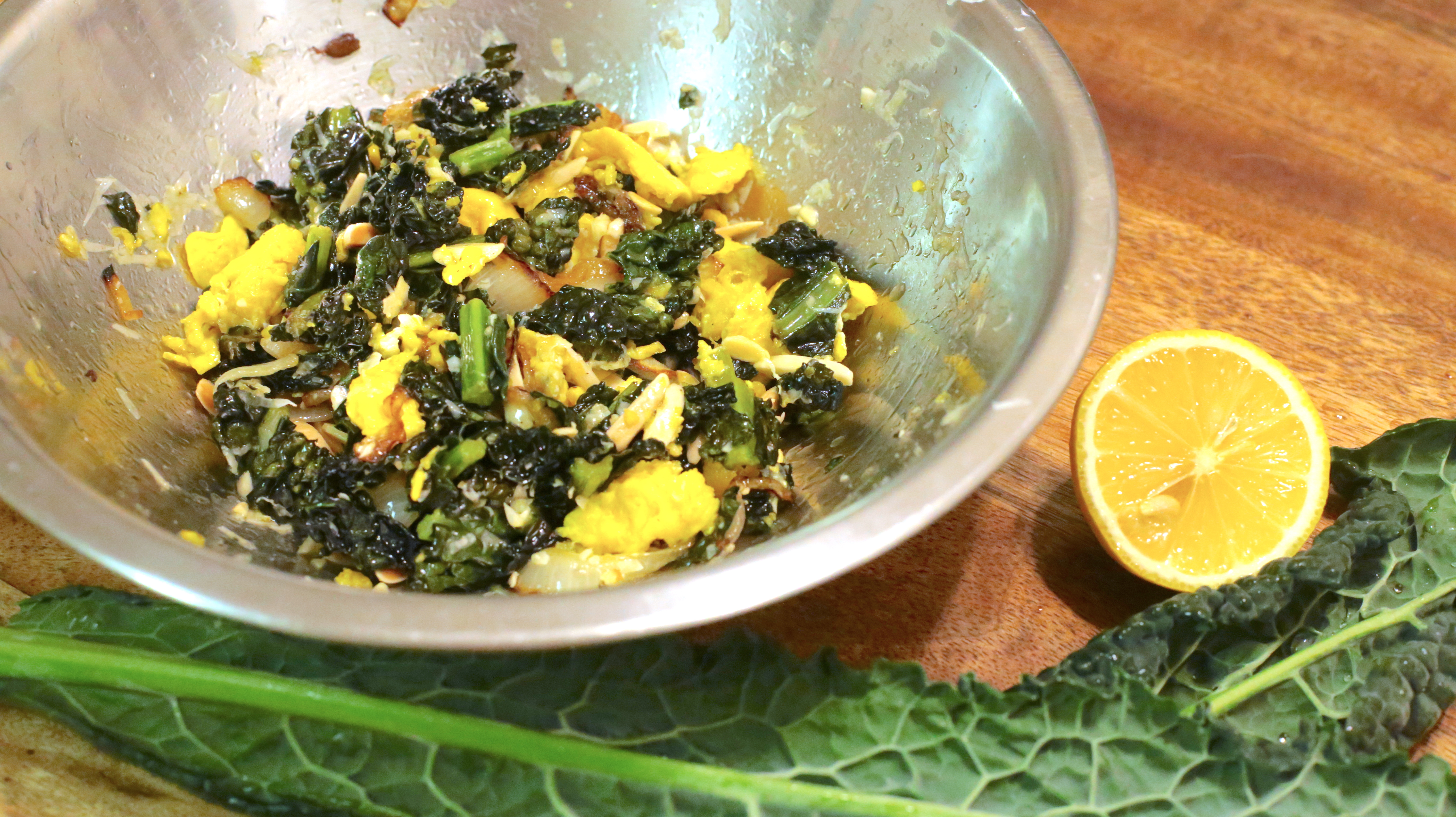 fried kale with eggs