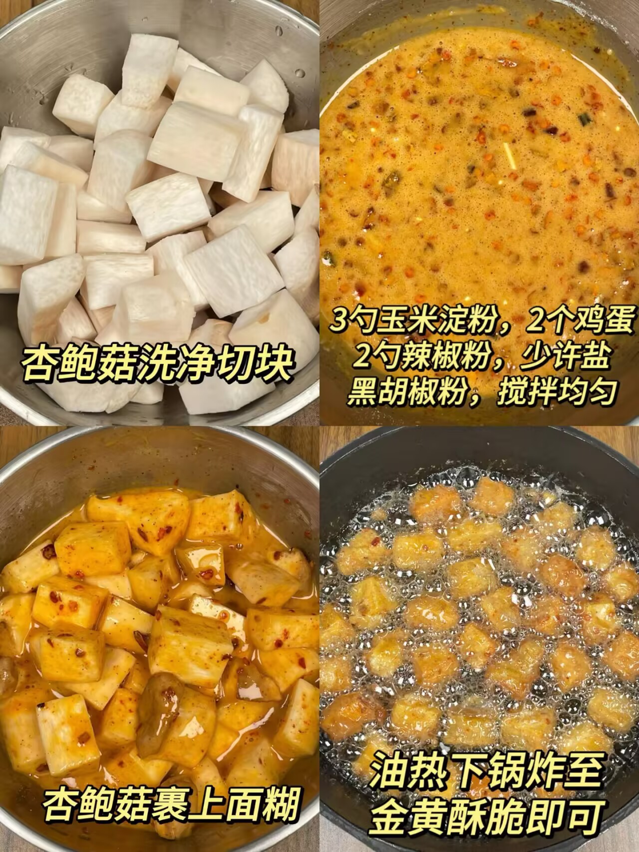 这哪儿是杏鲍菇啊!明明是 “素炸鸡”!外酥里嫩咬一口会爆汁💥luqinglang (33)in #food • 7 months ago 杏鲍菇切麻将大小的块(好炸透,吃着也有满足感) 调灵魂面糊:3 勺玉米淀粉 + 2 个鸡蛋 + 2 勺辣椒粉 + 少许盐 + 黑胡椒,搅匀成 “能挂住但又流动” 的状态 杏鲍菇裹满面糊,油温六成热(筷子插进去冒小细泡)下锅,分批炸(避免粘连)至金黄酥脆,捞出撒孜然粉 / 欧芹碎,香到邻居来敲门! 小贴士:面糊别调太稠,否则外皮会 “厚到噎人”;炸完可以再复炸 10 秒,酥脆度直接翻倍~ 你们试过用杏鲍菇做 “素肉” 吗?还有啥创意吃法?评论区快甩给我,我挨个抄作业! #homemade #vegetarian #easycooking #appetizer