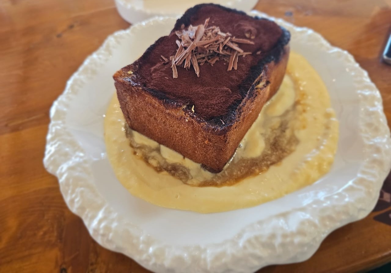 At first I thought inside the bread there would be filling of Tiramisu, but as I started digging in, there was nothing in it and it was so dry. The so called French toast turned out to be a dry loaf of burnt bread, and it was such a big loaf that between me and hubby was impossible to finish. There was not enough Tiramisu sauce to finish it. We both had a couple of bites and left it. We told the chef this was not what we had desired for, he felt disappointed, because he claimed it to be his signature dish. After this I was so disappointed that I did not want to have anything else from the cafe and we cleared the bill and walked out.